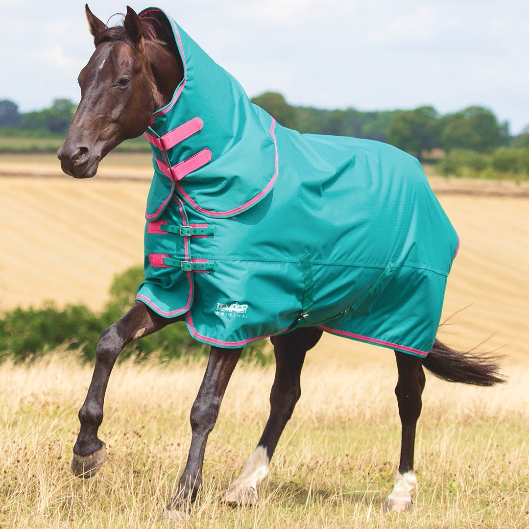 The Tempest Original 100g turnout rug & neck is suitable for cool nights and days when a heavier weight rug is too warm, or for hardy horses in colder weather. The rug and neck set offers great layering options in changing weathers. The neck cover attaches to the rug and fastens with touch close straps.