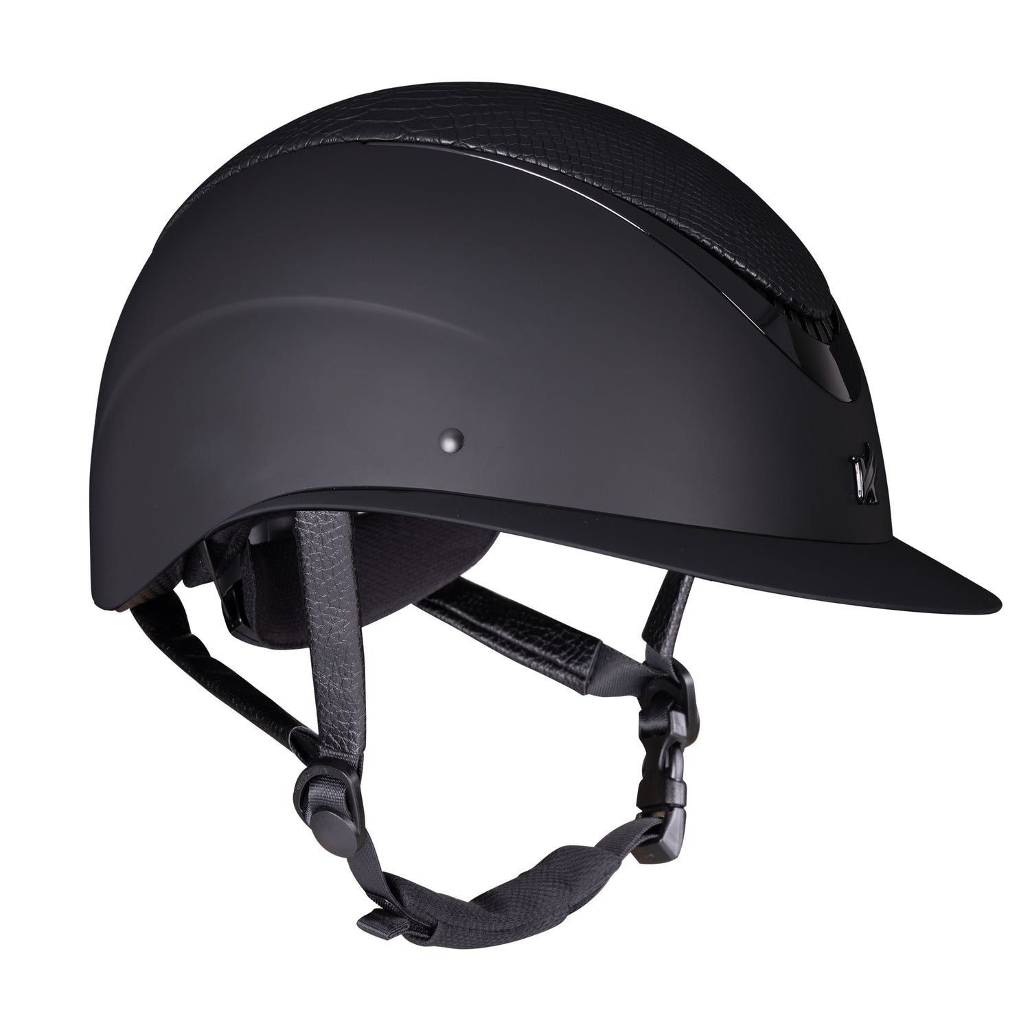 Fine tune your fit with dial adjusted Karben Ellipse riding hats. Lorah offers grown-up style with understated elegance. Faux snakeskin detail in the crown is gracefully set off by the high shine frame and matt shell. Designed with carefully balanced geometry, the wide peak frames the face, the low profile sits deep on the head.