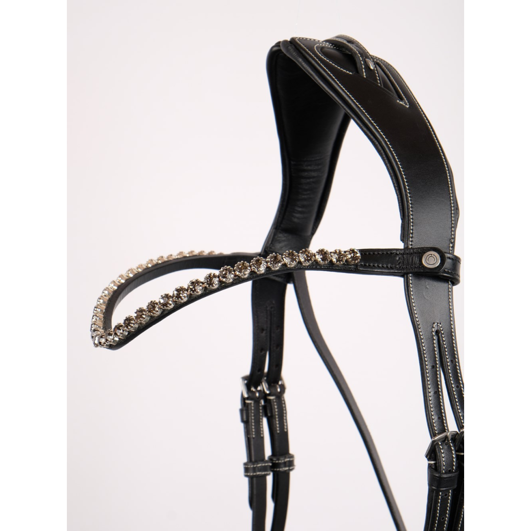 All Montar crystal browbands can be easily changed even when the bridle is in use thanks to a Montar snap button in each side.