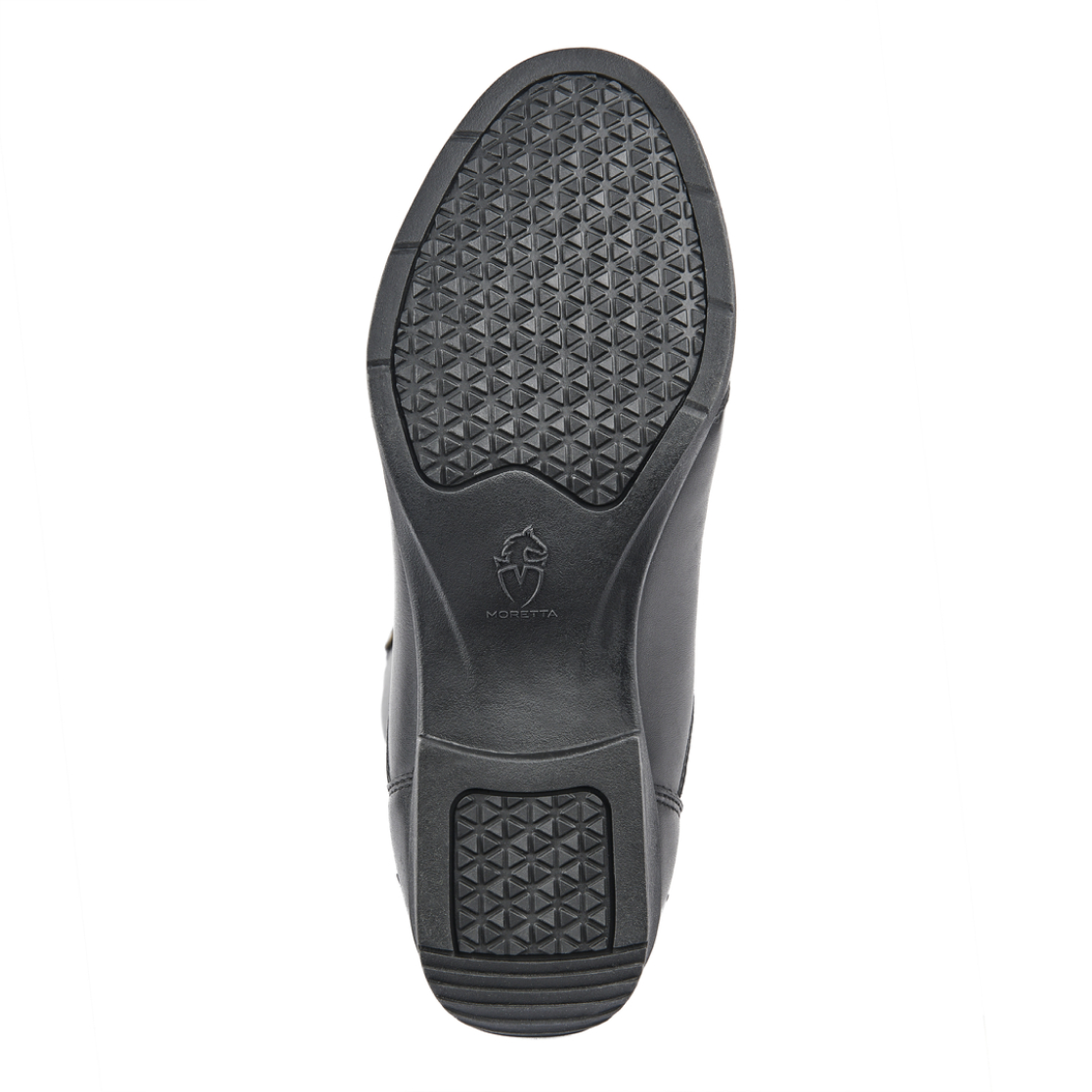 The Shires Moretta Carla Riding Boots have a classy milled leather outer panel is combined with a nubuck inner calf for elegant looks with enduring appeal. The Carla long riding boot design is based on the popular Albina boots but with a sleeker front section. Full length stretch inserts achieve a neat leg fit and legs are kept comfortable thanks to the moisture control fabric linings. Supportive insoles and shock absorbing soles ensure feet stay energised in the stirrup.