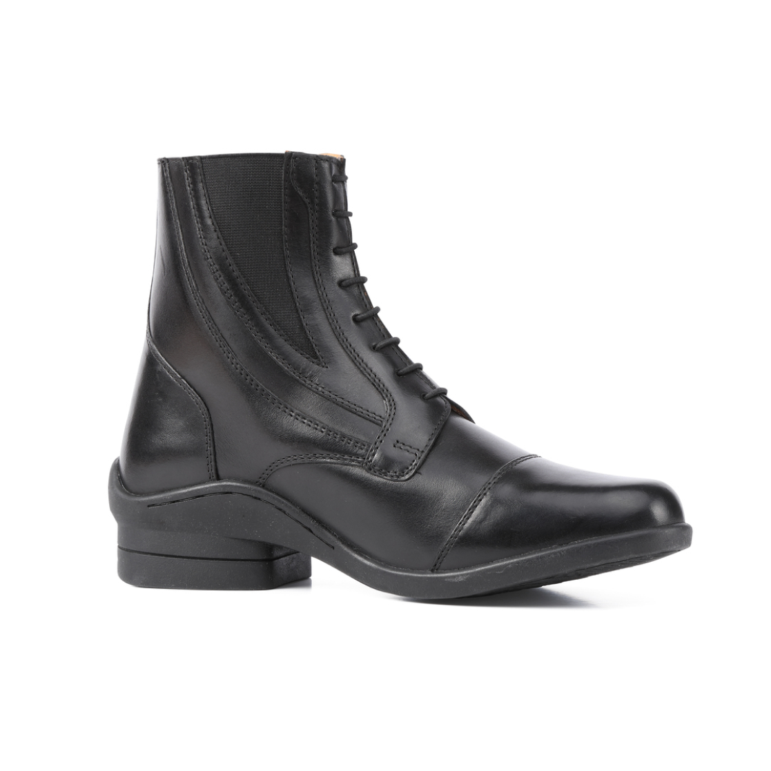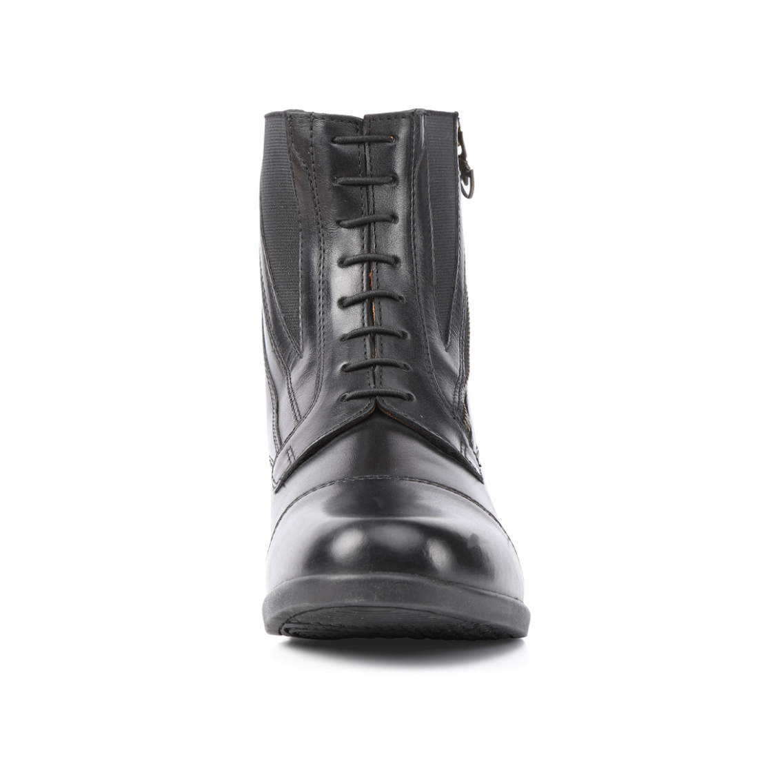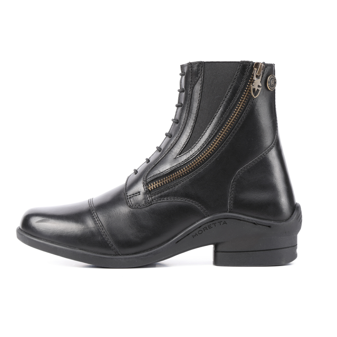 The Shires Moretta Alessia Leather Paddock Boot is styled for an individual feel, form fitting upper construction is paired with an ergonomic zip for a sleek look. The Alessia paddock boots are designed for durable comfort, UltraFit leg panels and elastic mock laces give ankles free movement, WickAway linings draw moisture away, SportActive soles offer extra stability and support.