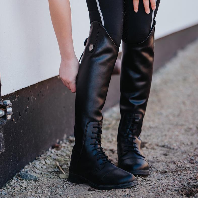 Designed for all riding needs, the Mountain Horse Veganza Young Boots offer a balanced and competition-capable option for young riders. The boots come with a removable extra insole that can increase the size by two half sizes, providing a perfect fit. In addition, the back of the boot features a strong and durable YKK® zipper and elastic for a customised fit. An ergonomically designed EVA insole is also included, complementing the slim riding-specific outsole with dirt-repellent tread zones.