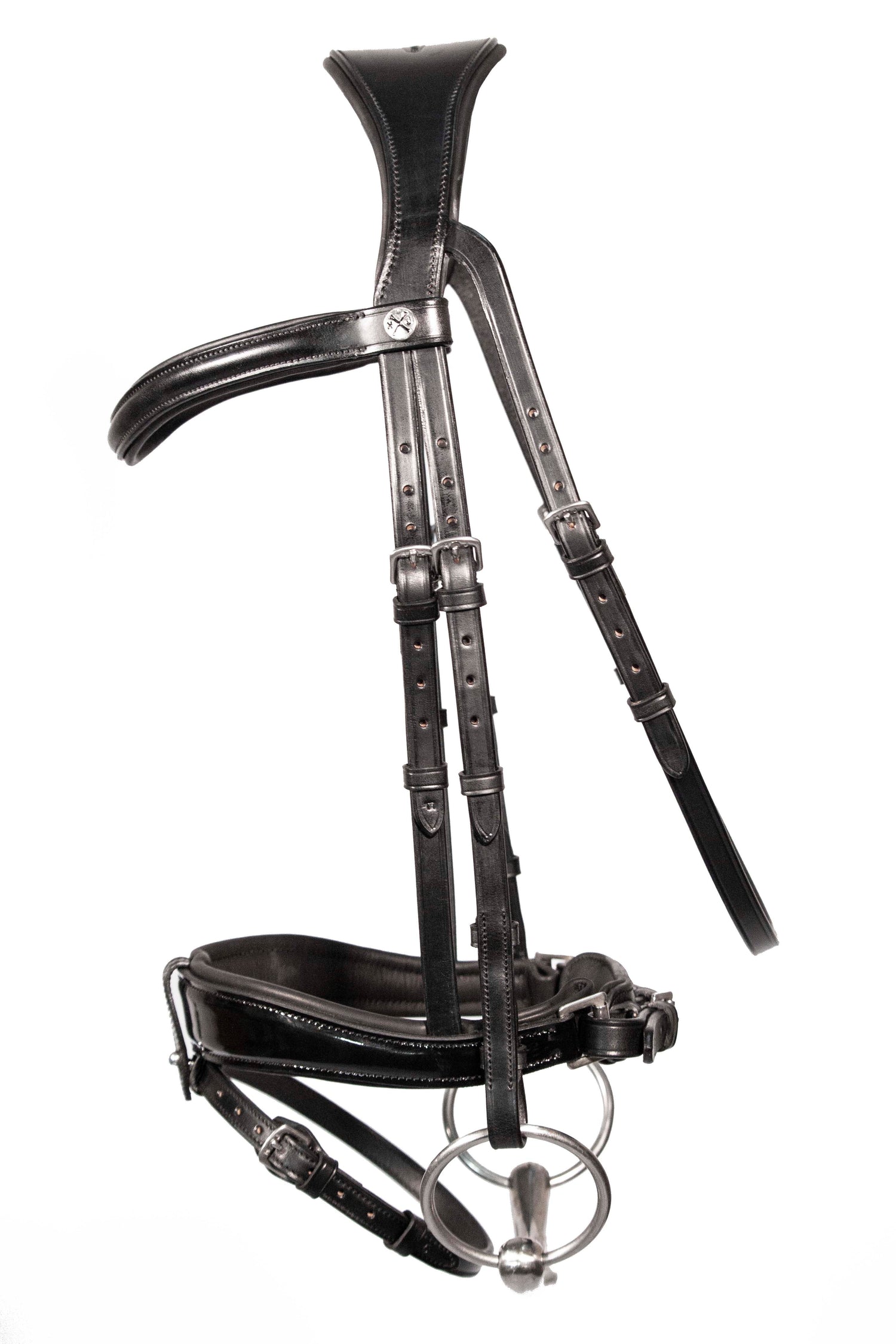 - This bridle is made up from the Flexure Curve headpiece, curved browband, cheekpieces and patent dressage noseband.