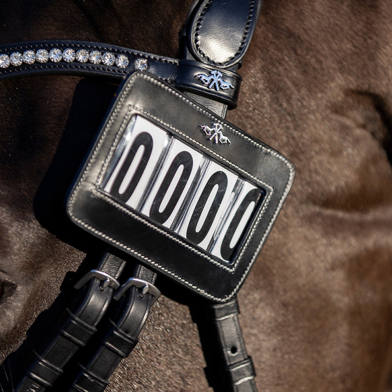 Get competition-ready with our Set of 2 Leather Competition Numbers! Made from 100% leather, these numbers feature four digits and can be easily fastened in three ways. Choose to attach them to your saddlepad, headcollar, or bridle for convenience. The white décor stitching and HV Polo metal logo add a touch of elegance to your competition look. Order now and stand out in style!