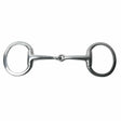 The Korsteel Stainless Steel Featherweight Thin Mouth Jointed Flat Ring Eggbutt Snaffle is a lightweight and competition-ready bit designed to work gently on the bars and roof of the horse's mouth.