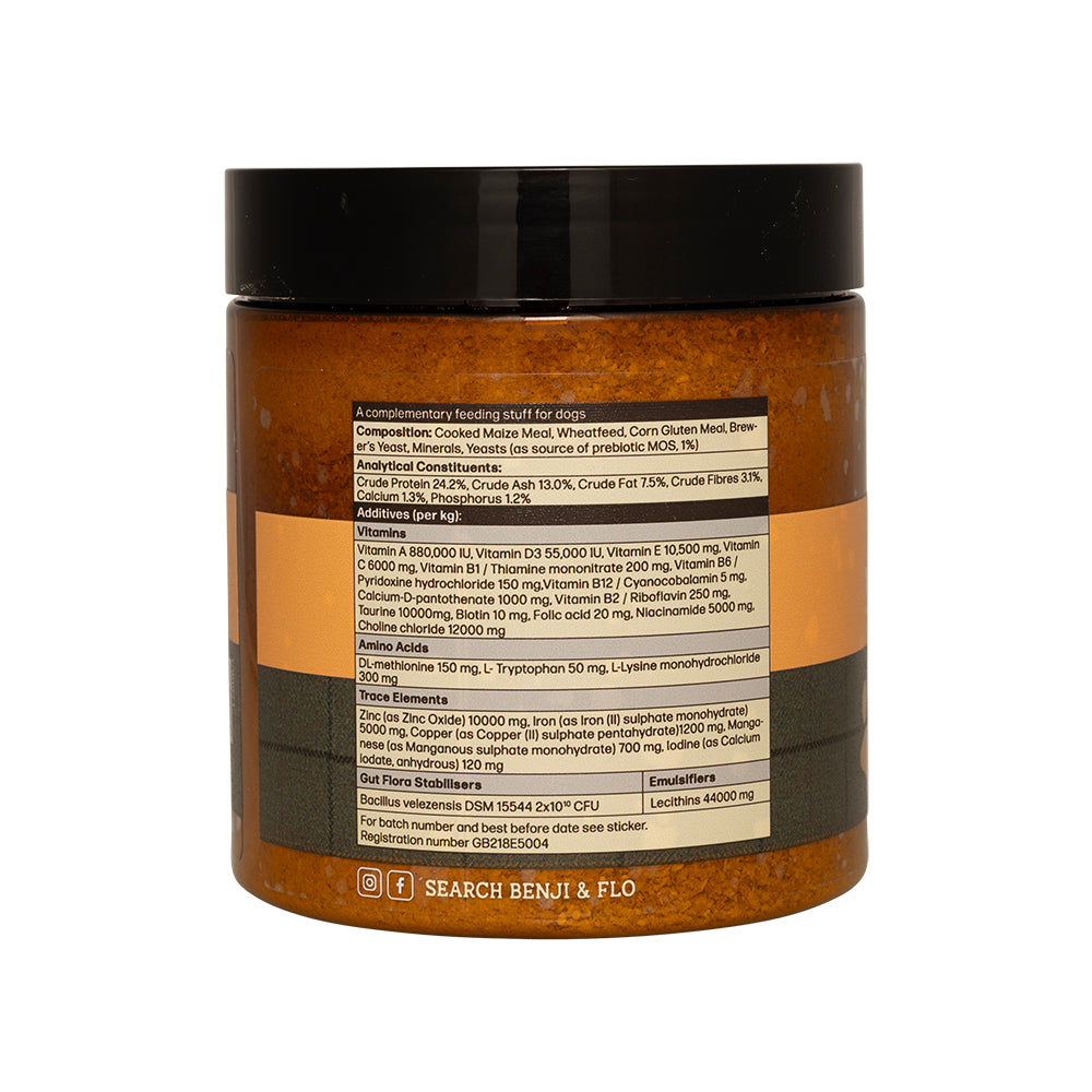 Support your dog's overall health and well-being with Benji & Flo Daily Multivitamin. This comprehensive formula is enriched with probiotics to ensure a happy and healthy pup from the inside out. Packed with essential vitamins and minerals, it's the perfect daily boost for optimal health.