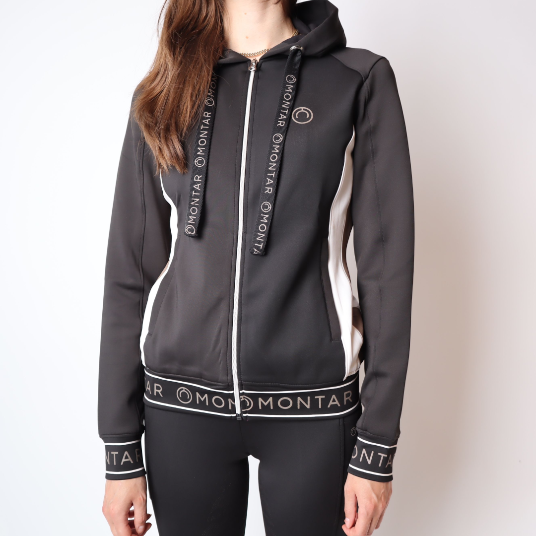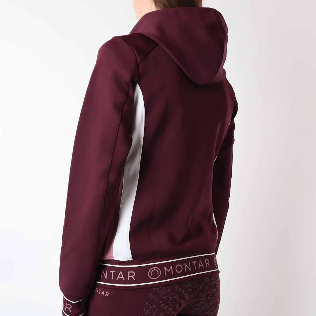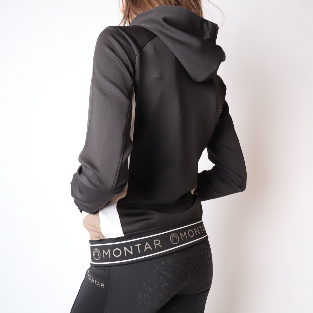 The Montar Alia Hoody is with two front pockets. Not only is the hoody in a very comfortable softshell fabric, but also very stylish with a wide logo around the wrist, on the hood and on the elastic band at the bottom of the jacket. The softshell feels elastic and breathable no matter the occasion.