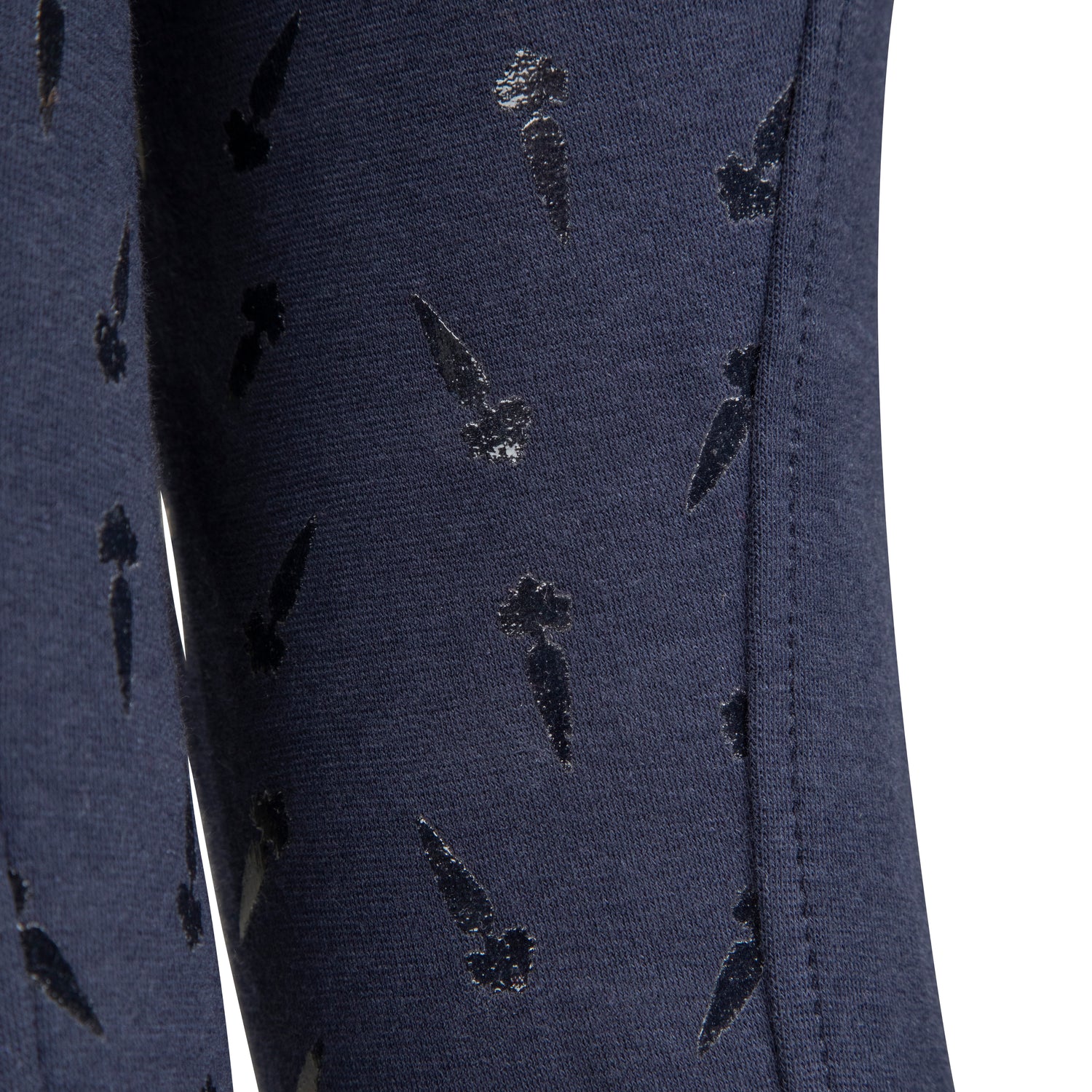 Pull-on jodhpurs with a mock fly detail and grippy silicone prints at the seat and inner legs for extra confidence in the saddle. Featuring Winnie's carrot pony treat designs. Made in a durable cotton knit with plenty of stretchy comfort.