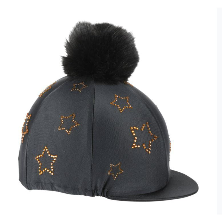 This diamante star hat cover from Shires has everything a girl wants, pretty sparkle diamante's to add a touch of glamour to your everyday riding, finished with a faux fur pom pom.