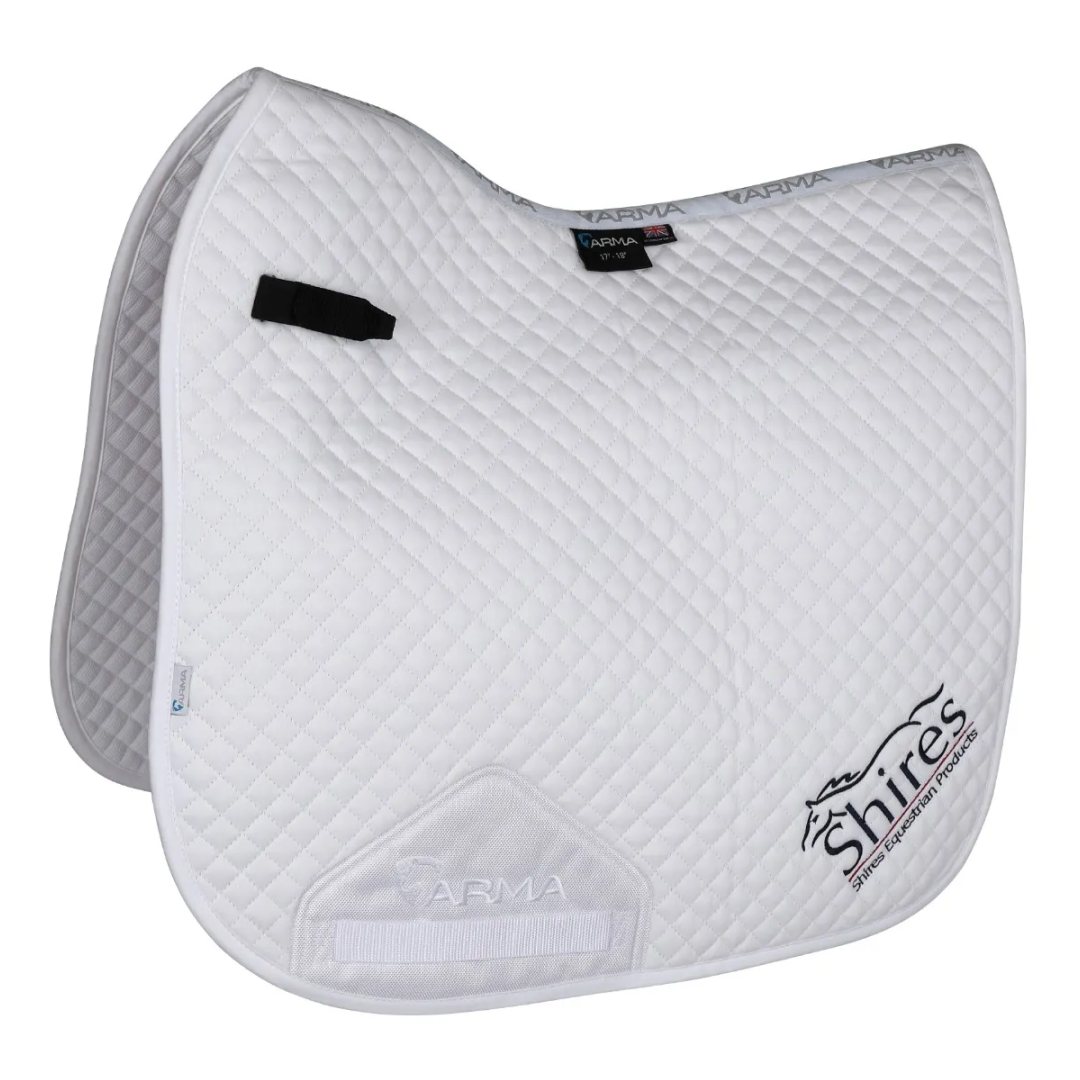The Shires Branded Dressage Saddlecloth is smartly branded and used by the #shiresprorider team. Breathable stay-smart anti-pill 100% cotton outer. ULTRA DRI ZONE lining instantly wicks sweat from the horse to reduce the risk of rubbing and increase comfort. Girth guides and elasticated D-ring straps for convenient security. Hardwearing girth guards.
