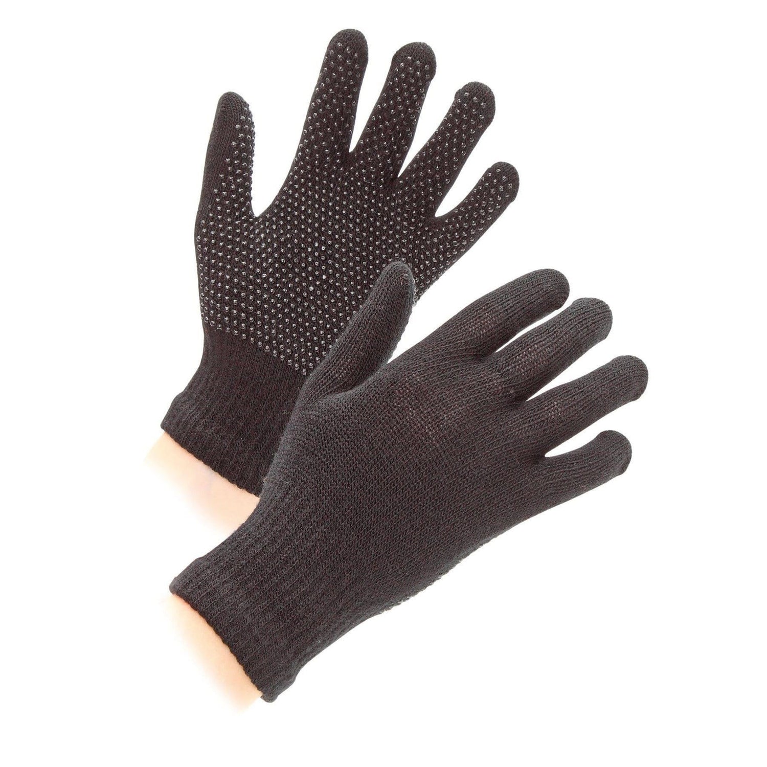 SureGrip riding gloves offer a one size fits all stretchy solution to cold hands. HeatKnit traps air which is warmed by heat from the hands. Rubber pimple print palm and finger grips offer security when holding the reins.