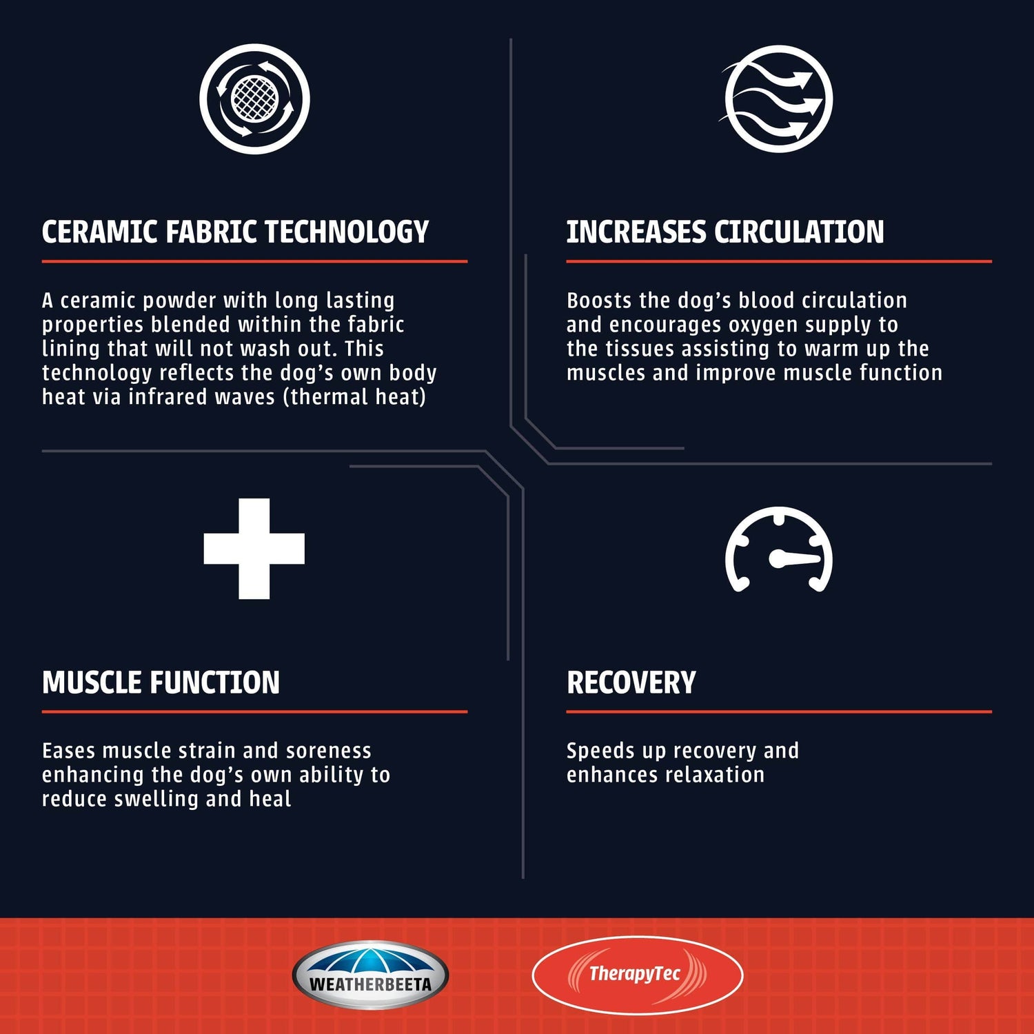 The WeatherBeeta ComFiTec Channel Quilt With Therapy-Tec Detach-A-Neck is the perfect choice for your horse both pre and post workout or whilst your horse is resting in the stable. With a 600 denier channel quilted outer, 220g polyfill; ceramic lining over the neck, shoulders, back and quarters; traditional side gussets for natural movement; memory foam wither relief that contours to the horse?s shape & lifts the rug off the withers; Ezi-clip front closure; low cross surcingles and tail cord.