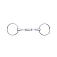 Double broken loose ring snaffle of stainless steel and on the mouth piece wide sweet cupper roll.