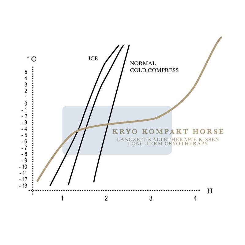 Short-term application of cold, for example with natural ice, cooling gels or water therapies according to Kneipp (hosing) result in warming after application. The tissue treated will then be better supplied with blood, inflammation and pain will increase. a suitable medium is required for tasting thermosteresis (heat removal). As tests have shown, the product STÜBBEN KRYO KOMPAKT HORSE is ideally suited for this purpose. it is a specially developed cold medium containing microcrystalline ice when frozen (about 50% volume by weight).