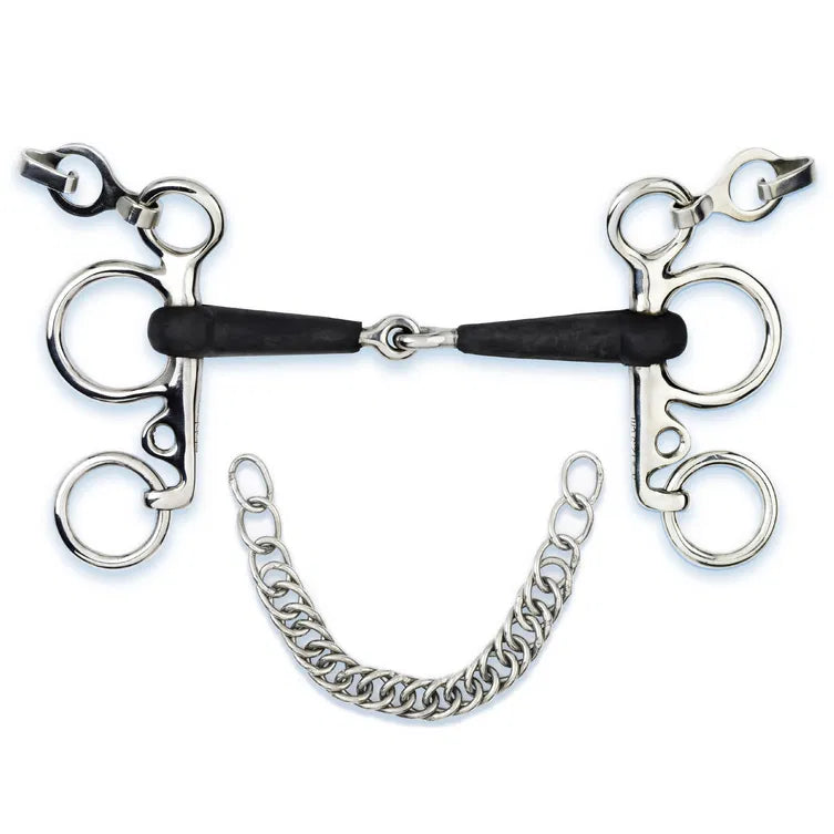- The flat curb chain hooks prevent the horse’s lips from being pinched.