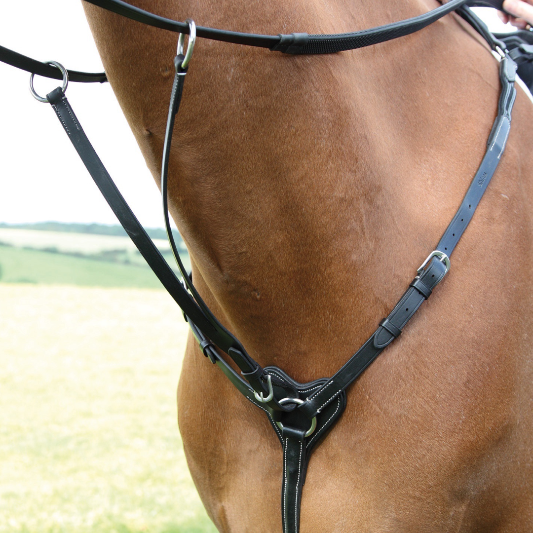 Finished off with the contrasting stitching detail found on the rest of the Shires Salisbury range to give you that classic look. This 3-point breastplate has the added benefit of a removeable running martingale, so whether you are heading off for a competition or looking for something for everyday use you can adjust it to suit you and your horses needs.