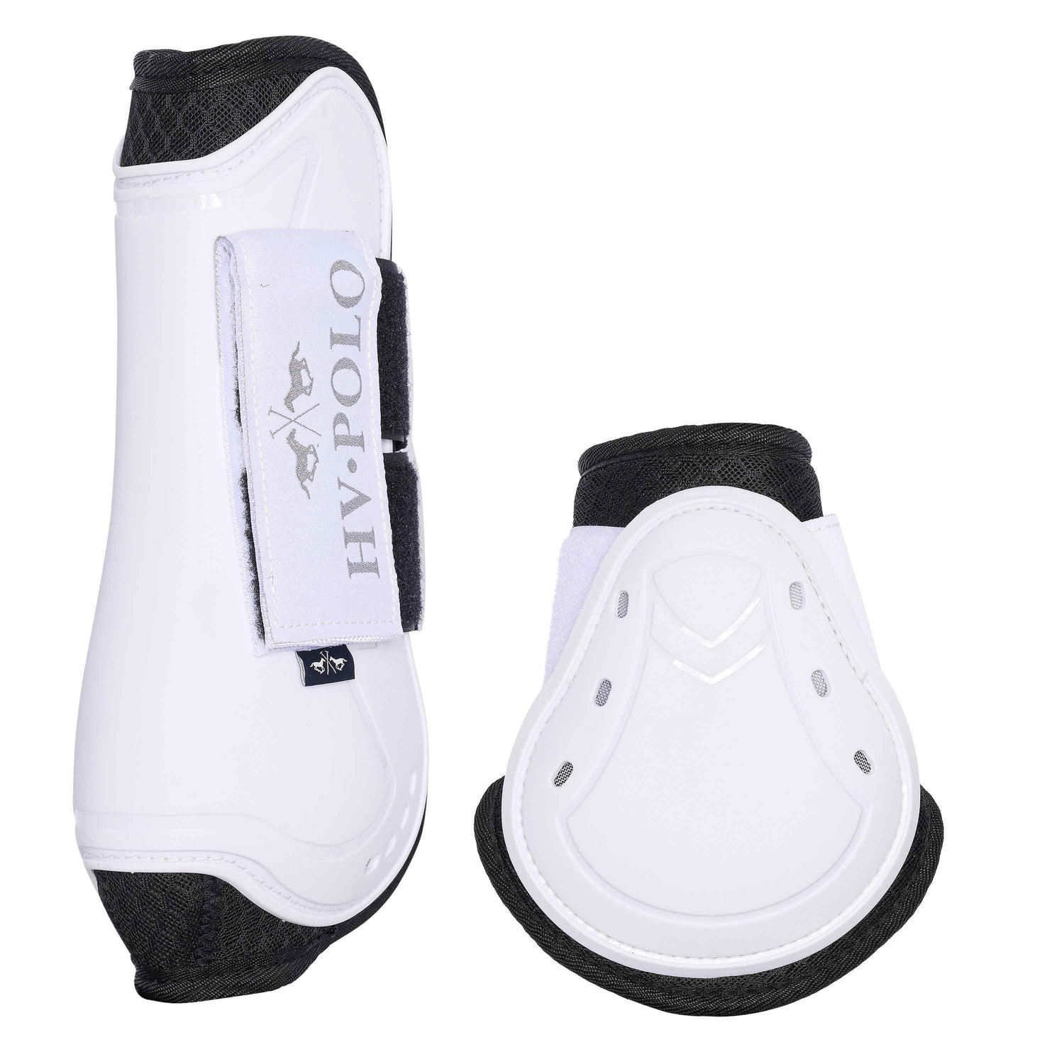 The HV Polo Tendon & Fetlock Boots Set is designed for superior protection and comfort. Crafted from durable material, these boots feature a shock-absorbing neoprene lining covered with a honeycomb mesh, ensuring optimal airflow and breathability. The outer shell is equipped with ventilation holes to keep your horse's legs cool and dry. With a convenient velcro closure and a stylish brand embroidery label on top, these boots are not only practical but also easy to clean.