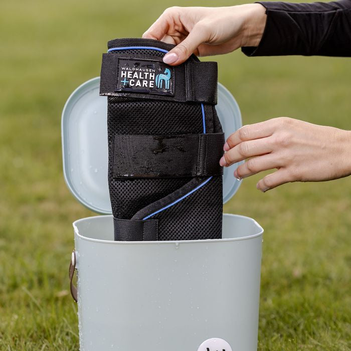 Help your horse recover faster with the Waldhausen Health + Care Ice Layer Boots. Designed to gently cool and soothe tired, stressed legs after intense training or heat exposure, these boots use innovative materials that slowly evaporate water to draw out heat and provide lasting relief. Simply soak, wring, and apply for a refreshing cooling effect that supports your horse’s well-being. Keep your horse calm and still during use to maximize comfort and effectiveness. Give your horse the care it deserves with these essential cooling boots.