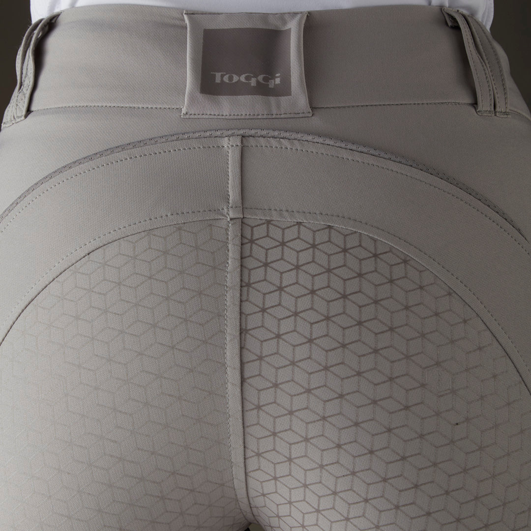 The Toggi Ladies Contour breeches are designed for comfort with a stylish and flattering silhouette. Made with a 4-way stretch woven fabric offering great support and movement when you are riding and on the yard. Close fitting ankles with mesh ensure you stay cool and comfortable. A high waisted cut and full silicone seat offer comfort as well as security.