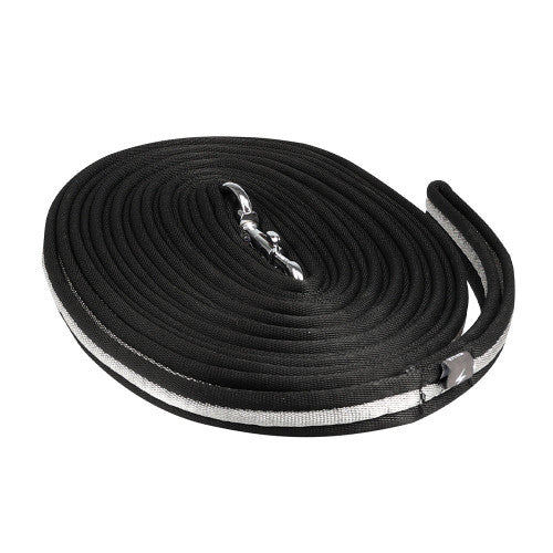 Hy Equestrian Silva Flash Lunge Rein - Black/Reflective Silver / One Size is backordered and will ship as soon as it is back in stock.