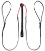 Innovative length-adjustable and flexible leather triangular reins for riding or lunging. The W-trainRein triangular reins are attached to the saddle girth or lunging girth between the front legs. A special rein runs through a pulley and is guided from there through the bridle rings (from the inside to the outside) back to the saddle girth or lunging girth. The pulley allows the reins to yield and facilitates gentle and mouth-friendly bending and gymnasticising while riding or lunging.