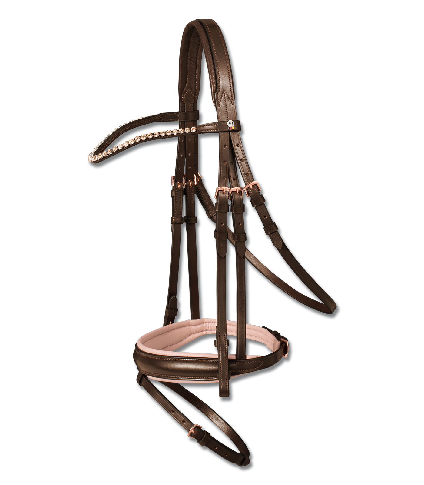 Add a touch of elegance to your riding with this stunning bridle from Waldhausen's X-Line collection. Featuring rose gold accents and premium craftsmanship, this bridle is perfect for riders who appreciate quality and style.