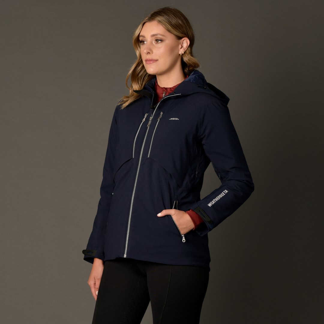 The WeatherBeeta Tania Waterproof Jacket is a technical 100% waterproof, windproof and breathable jacket with sealed seams and Thermi-heat lining that utilises thermal reflection to help maintain warmth and prevent heat loss. A waterproof centre front, chest and hand zips and a quilted hood. Keep cool whilst riding with the under-armhole zip vents with technical mesh vents.