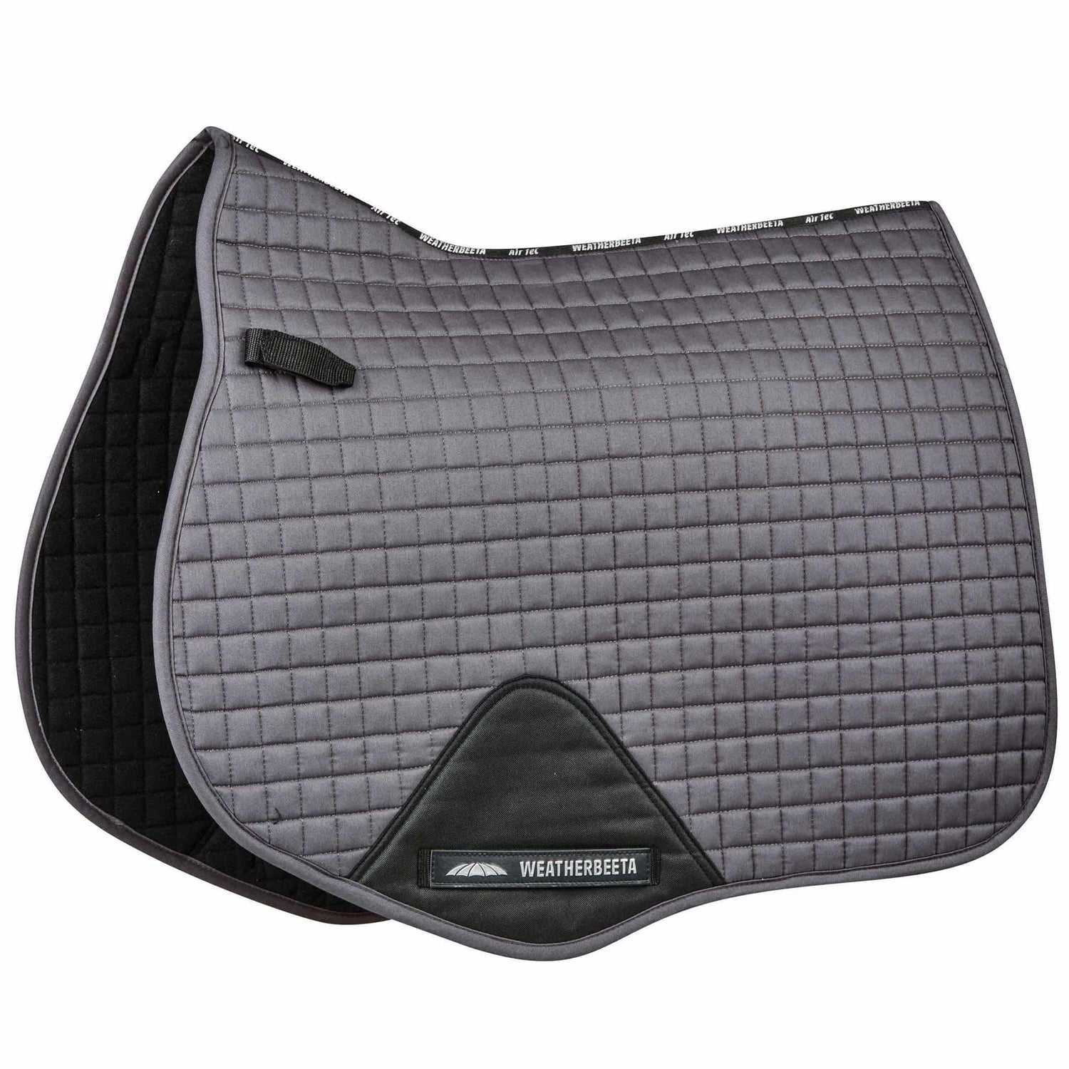 This durable WeatherBeeta Prime All Purpose Cotton Saddle Pad has a wick easy lining to help keep your horse cool, dry and comfortable. It features a breathable mesh spine for extra airflow and a PVC-covered girth patch for added durability. It also features a high wither design that allows for extra space where needed.