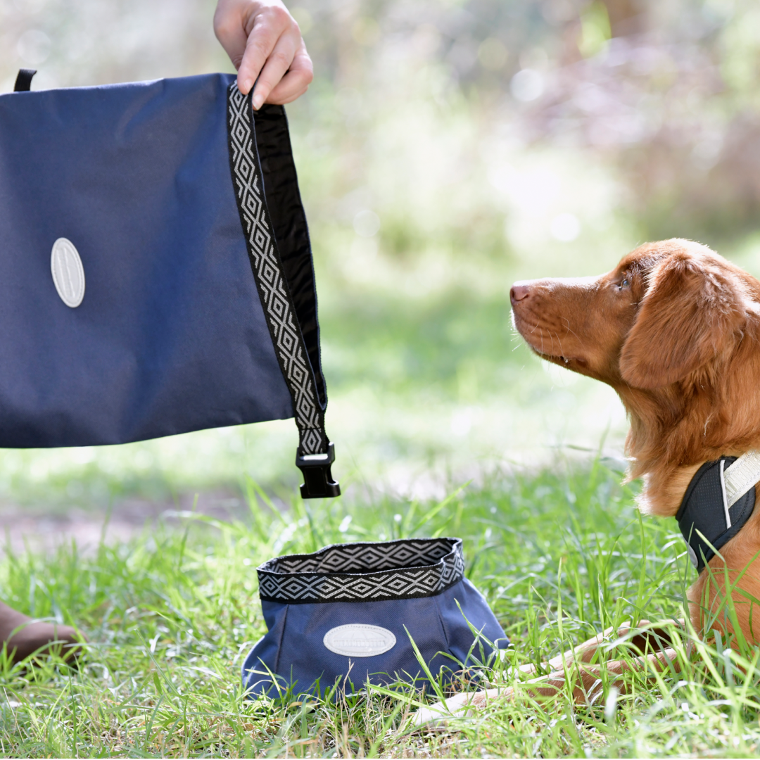 The WeatherBeeta Explorer Dog Water/Feed Bowl is made from a strong Oxford fabric with waterproof lining, making it ideal to use as a water or feed bowl when out exploring with your dog. Loops for hanging to dry out. Fold away design.