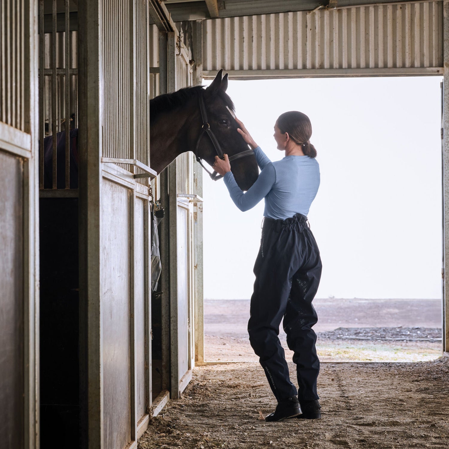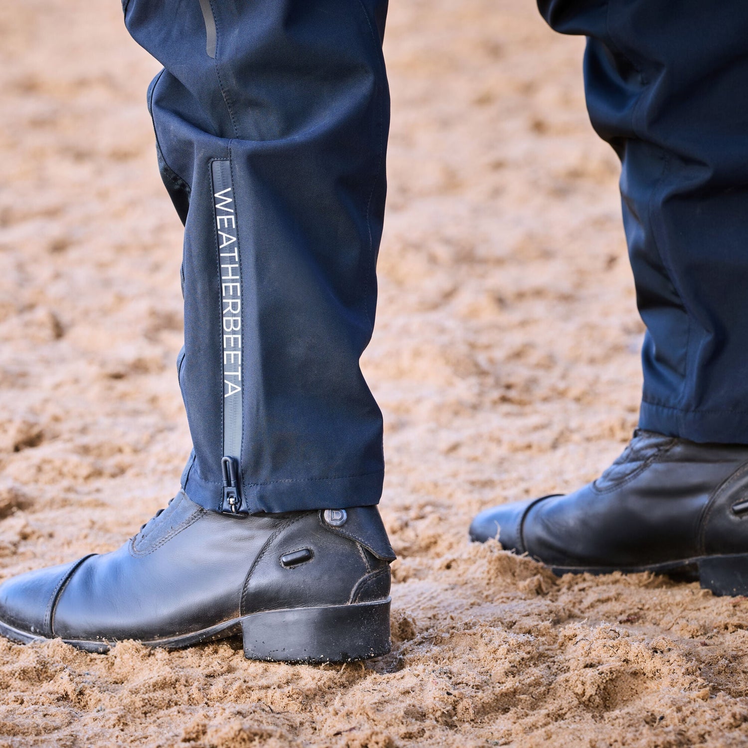 Stay dry, comfortable and in control no matter the weather with the WeatherBeeta Rayne Waterproof Overtrousers II. Specifically designed for equestrians, these overtrousers offer superior protection against the elements while ensuring visibility and security in the saddle. Whether starting a ride before sunrise or facing an unexpected downpour, the Rayne Waterproof Overtrousers II provide reliable weatherproofing, durability and customisable comfort, keeping focus on what matters most – the connection with your horse.
