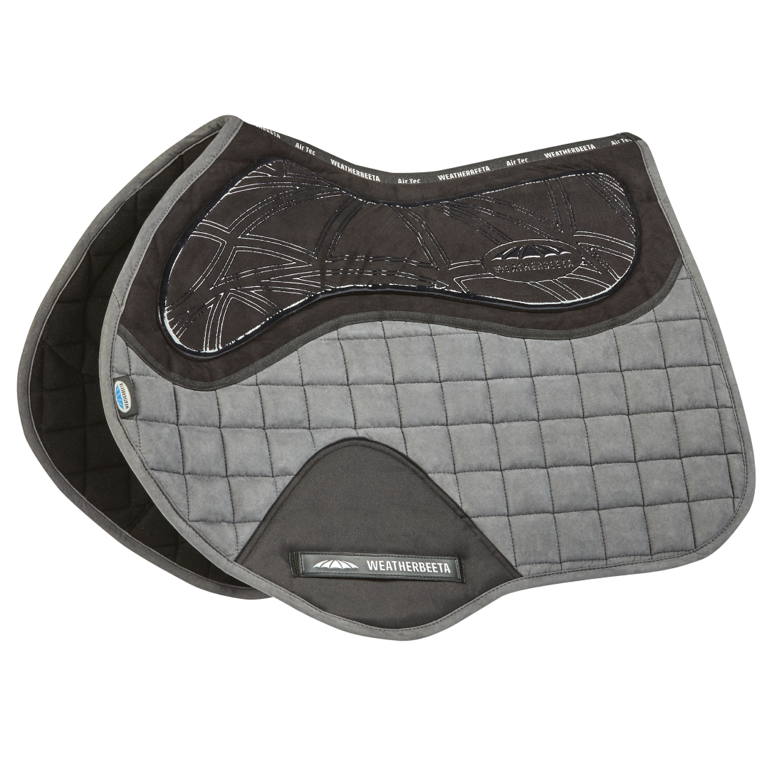 WeatherBeeta Ultra Grip Jump Saddle Pad features a silicone grip with memory foam padding situated under the saddle for ultimate comfort and practicality. The covered girth guard reduces excessive wear for added durability, and the durable suede fabric with a wick easy lining helps keep your horse cool, dry and comfortable. Designed to fit more forward cut jumping saddles.