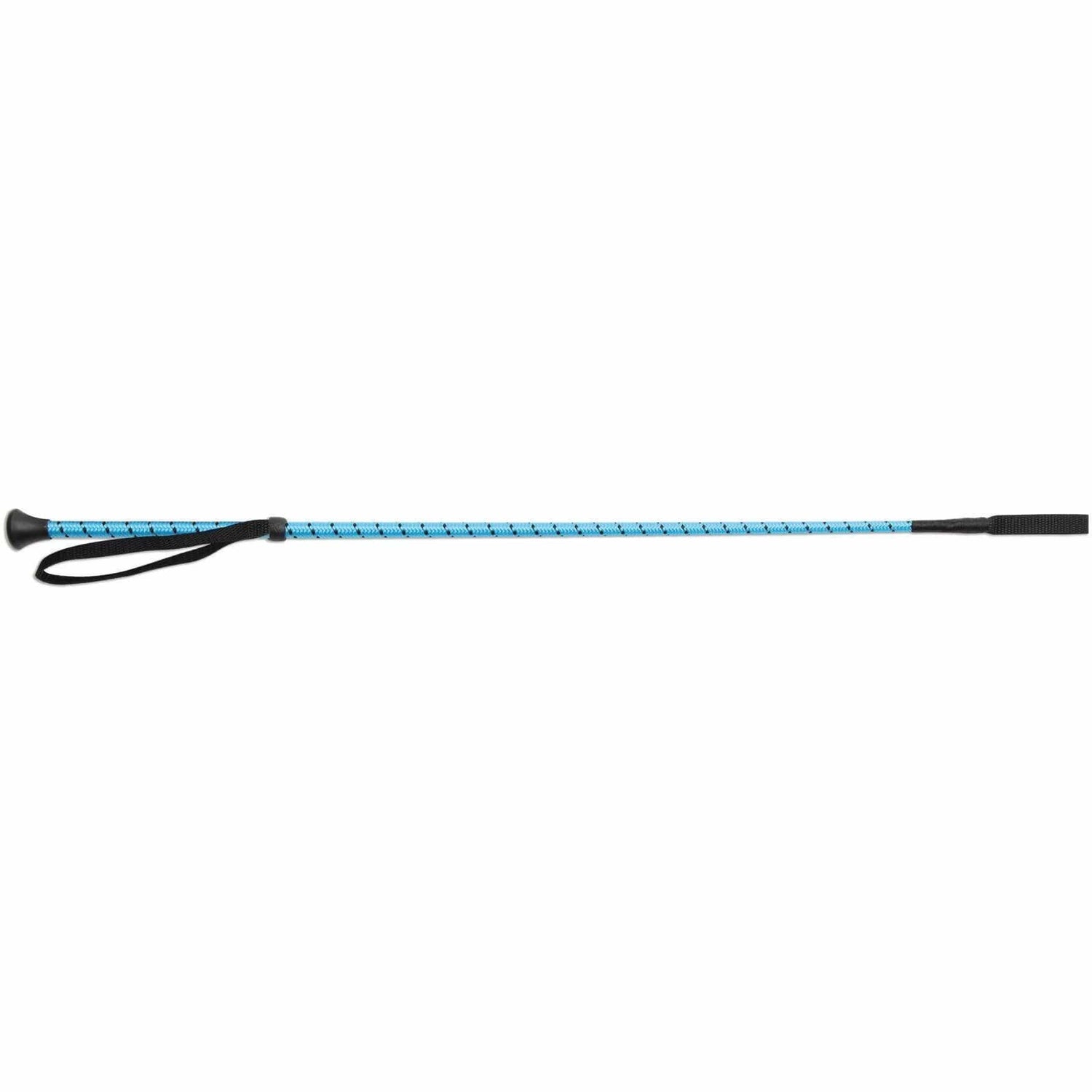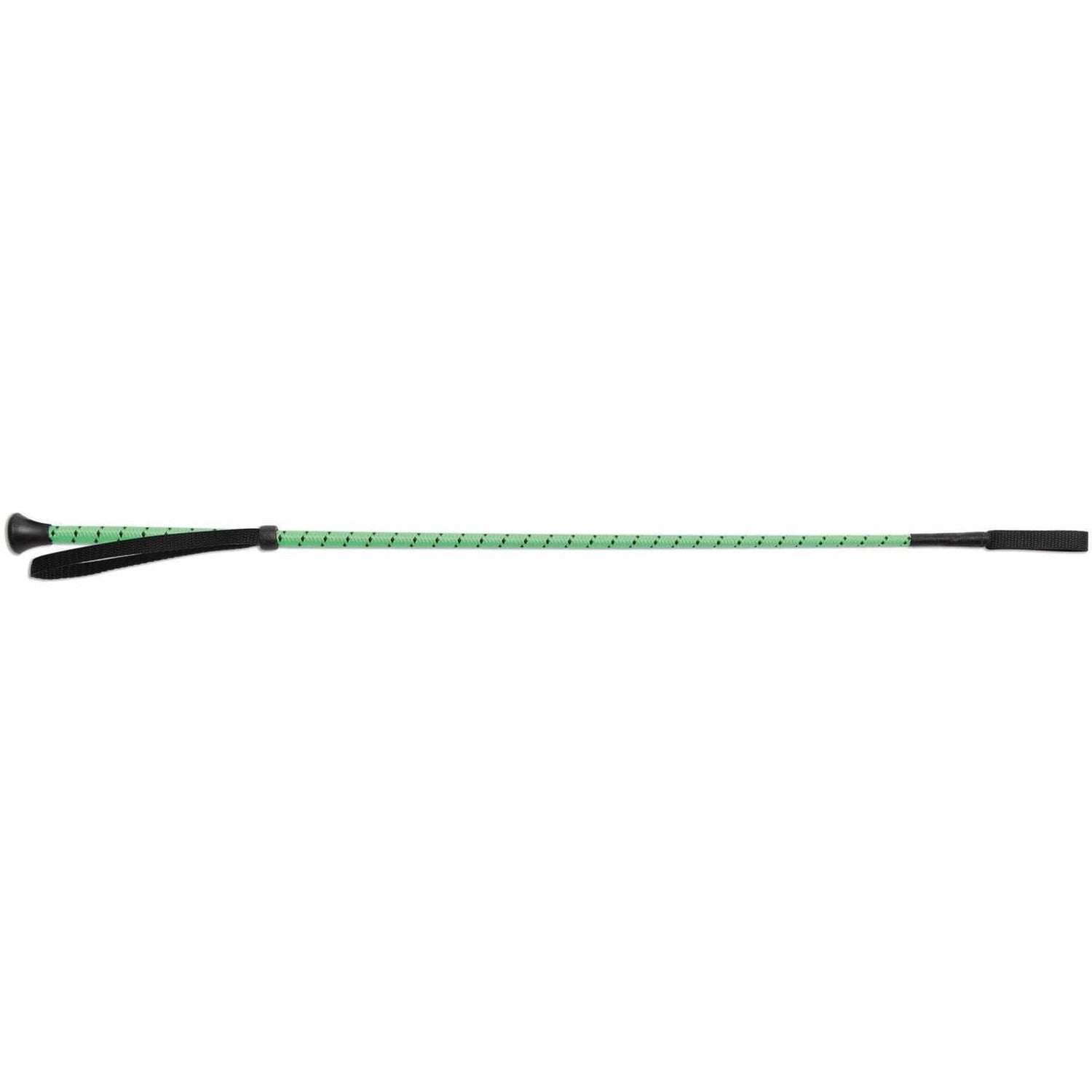 Threaded stem whip with threaded handle, wrist strap, nylon keeper and rubber cap.