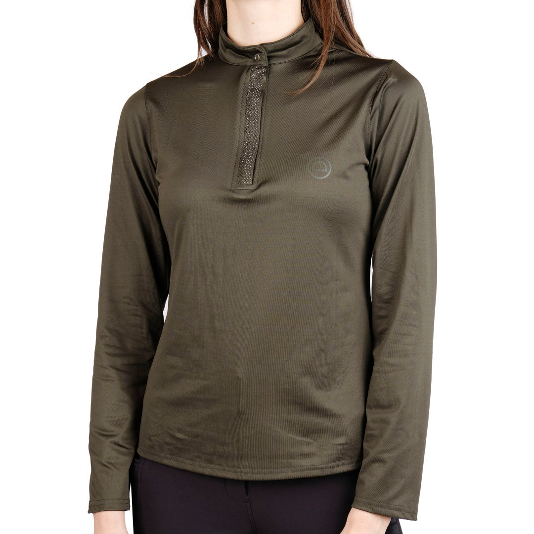 Montar Briella Crystal Detail Long Sleeve Ladies Base Layer - Olive / XS is backordered and will ship as soon as it is back in stock.