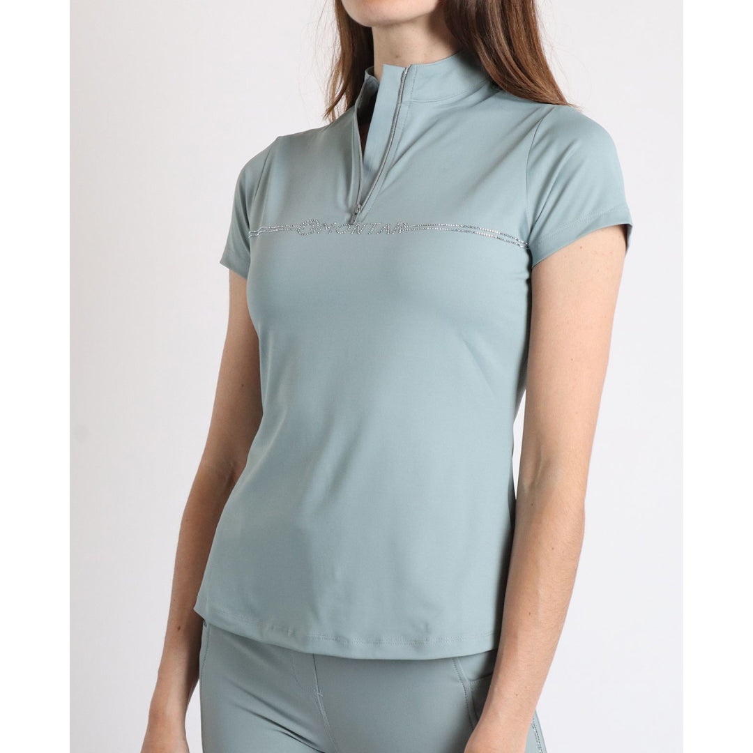 Embrace elegance with the MoAviana Polo, perfectly coordinated with our MoAviana breeches and pull-on tights. Adorned with crystals in two rows across the chest and featuring a crystal logo, this polo exudes sophistication and glamour, making it a standout piece in your riding wardrobe.