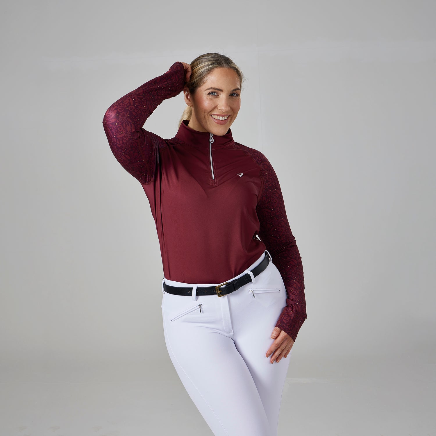Attractively designed in technical fabrics, the Aubrion Hyde Park base layer makes the ideal partner for high energy eventing or leisure riding alike. Moisture wicking and quick drying to keep the skin feeling fresh, a 1/4 zip neck offers ventilation as the day warms up. The top fits comfortably to your body without feeling restrictive, comfort seams eliminate the risk of chafing and irritation allowing full focus.