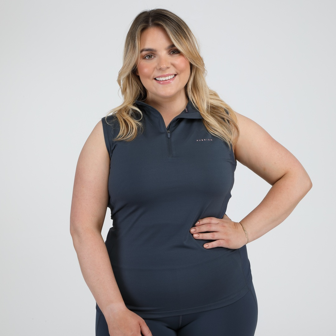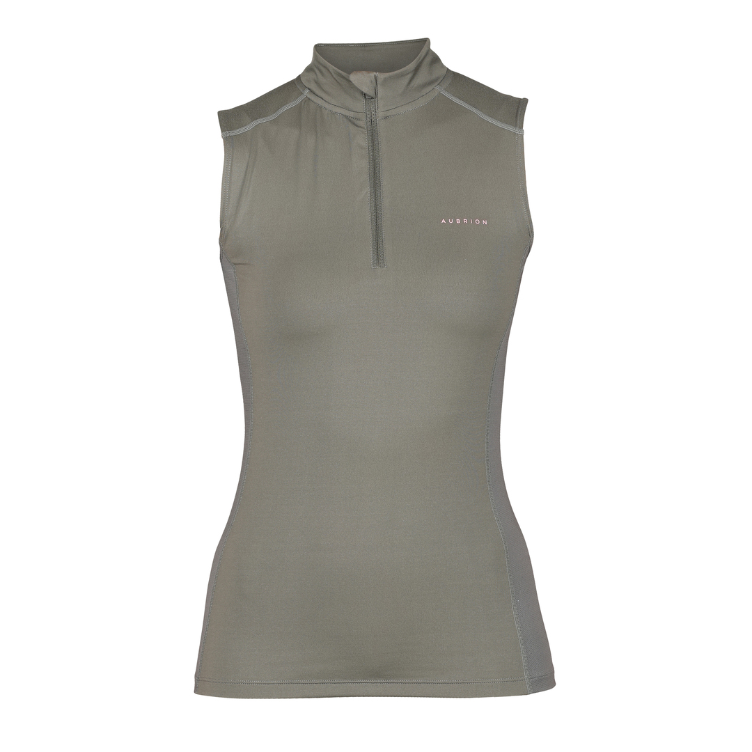 The Shires Aubrion Ladies Revive Sleeveless Base Layer is for the ultimate in athletic performance, the Revive sleeveless base layer offers performance and support to the active rider. Body skimming for a second skin feel, lightweight moisture management technology and ventilated side panels keep the body comfortable. UPF 50+ protects skin from the sun's harmful rays. Panel construction for increased range of motion, 1/4 zip neck for increased ventilation, side zip pocket for safe keeping of essentials.