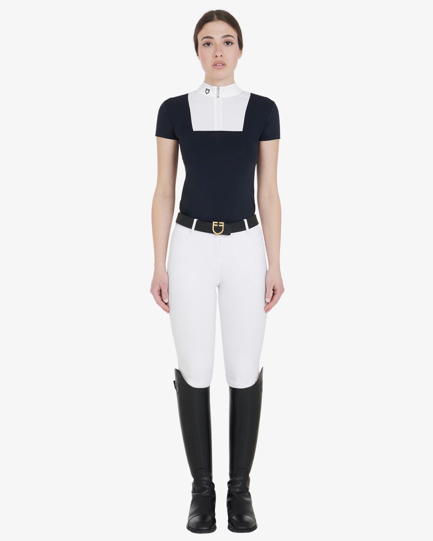 Women's Mariam slim fit polo shirt in stretch and breathable technical fabric with half sleeves, simple, refined and with excellent wearability. Women's short-sleeved two-tone slim fit polo shirt, perfect for daily training and competitions.