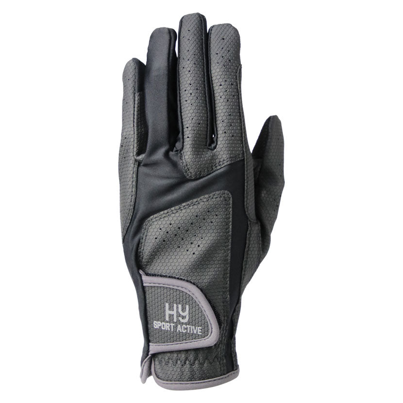 This high performance glove is designed with lightweight Synthetic PU and stretchable Lycra for maximum grip and feel on the reins. A high level of flexibility is achieved with the Lycra inserts and reinforcement for durability is added in key areas. Discreet micro holes aid ventilation whilst the smooth and comfortable lining wicks moisture away from the skin to aid quick drying. The touch tape wrist fastening is partnered with an elastic cuff for a secure fit and smart touch screen finger tips are integrated. The contrasting trim and Hy logo complement the glove for a professional look and a handy hanging loop is included on the inside. Match with other items in the Sport Active + range for a professional look.