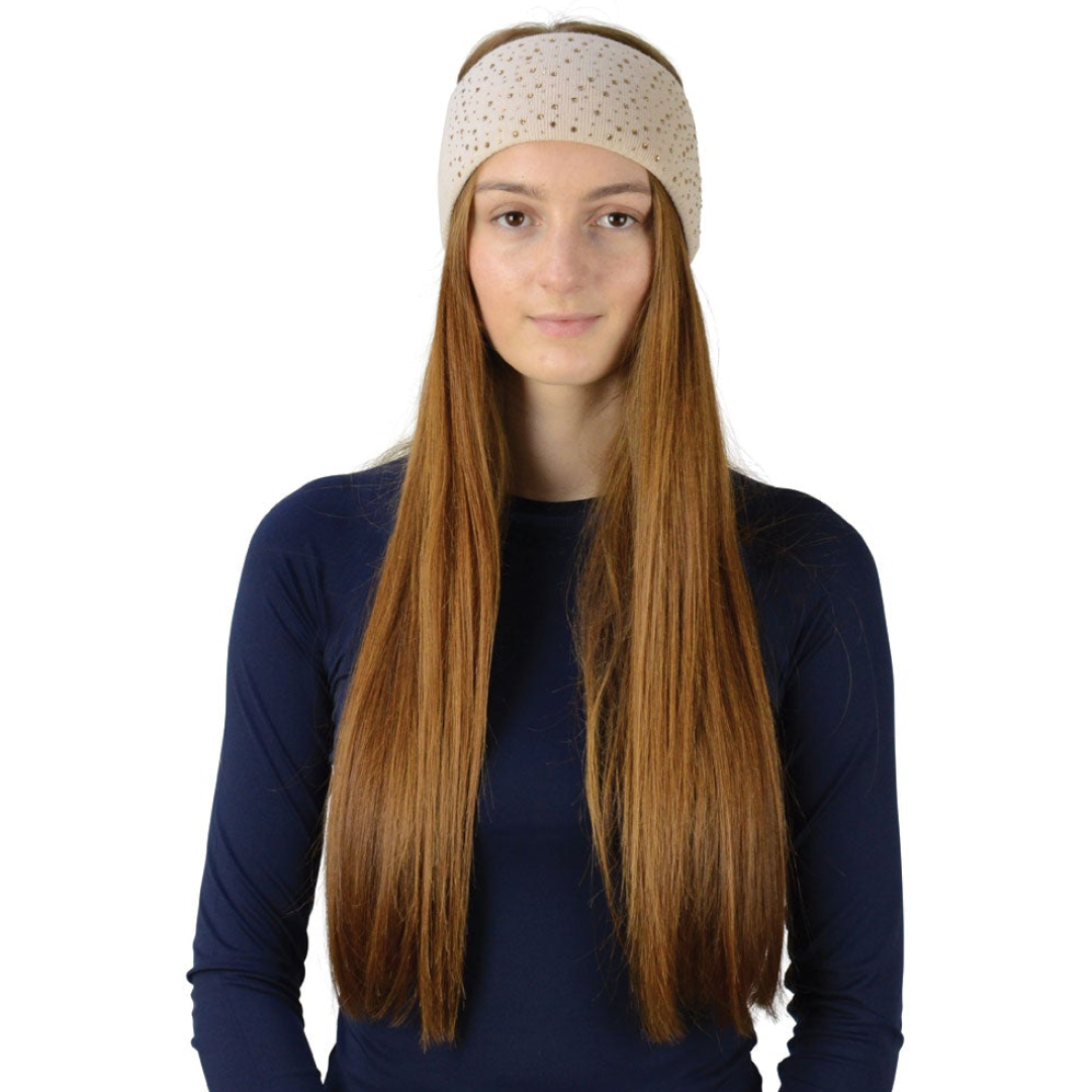 A luxurious close-knit headband beautifully finished with a banded cluster of delicate diamantes across the front of the headband.