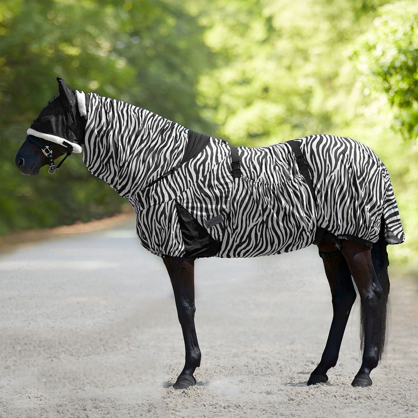 All-round, safe protection for eczema horses offers this rug made of breathable functional fibres. the atached neckpart and the belly flap ensure ideal protection against nasty insects. Great wearing comfort and freedom of movement thanks to special design. Supplied without mask. Incl. repair kit.