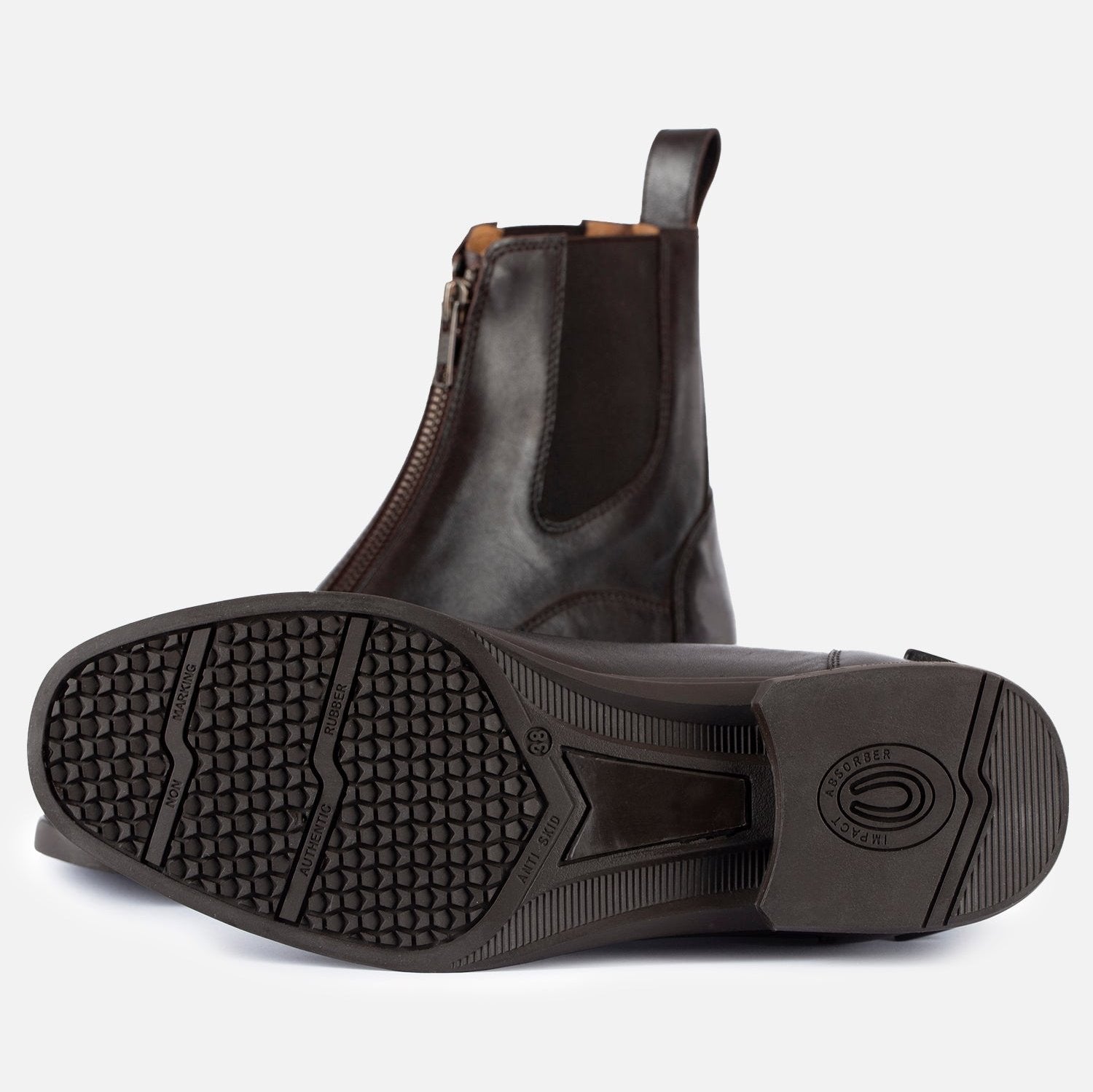 The Animo Zotek Boots are crafted from genuine leather, combining style and functionality for equestrian enthusiasts. The boot features a gripping rubber sole, ensuring stability and traction in various conditions. A front zip provides easy wear, while the side elastic ensures a comfortable, snug fit.