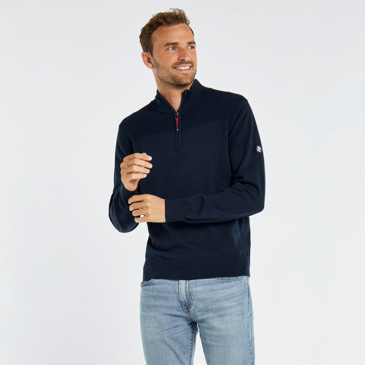 The Dubarry Mens Richhill Sweater is a truly flexible luxury. A cotton and cashmere mix zip-neck that is comfortable at the office, out on the deck or hosting seaside sundowners. Spun with Pima cotton for softness and durability, its lightweight feel works as a mid-season layer too, taking you from spring through to early autumn in style and comfort.
