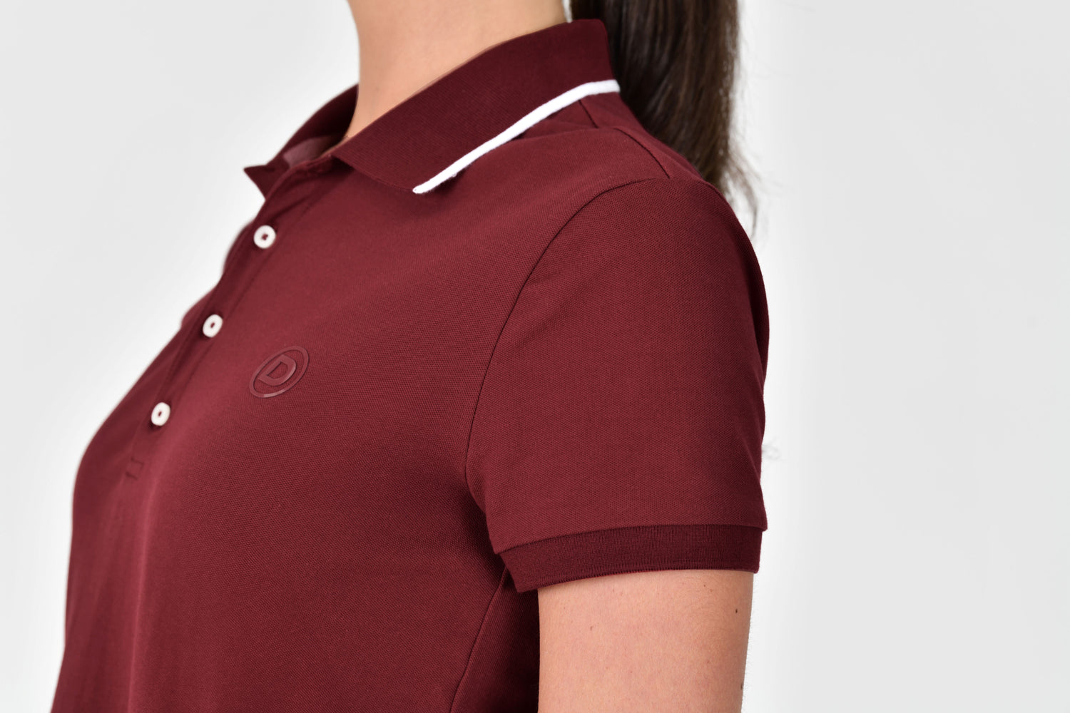 Stay cool while riding in style in the Dublin Cotton Pique Short Sleeve Polo. This classic stretch cotton polo is naturally breathable, allowing moisture to be drawn away from the body keeping you cool and comfortable all day long. The flat knit jacquard rib collar can be worn up or down for style as well as protecting your neck on sunny days. Fitted short sleeves offer a sleek fit and paired with the ribbed cuffs and button placket complete the sporty look. Subtle self-coloured Dublin 'D' branding on the front left chest keeps this polo smart and simple.