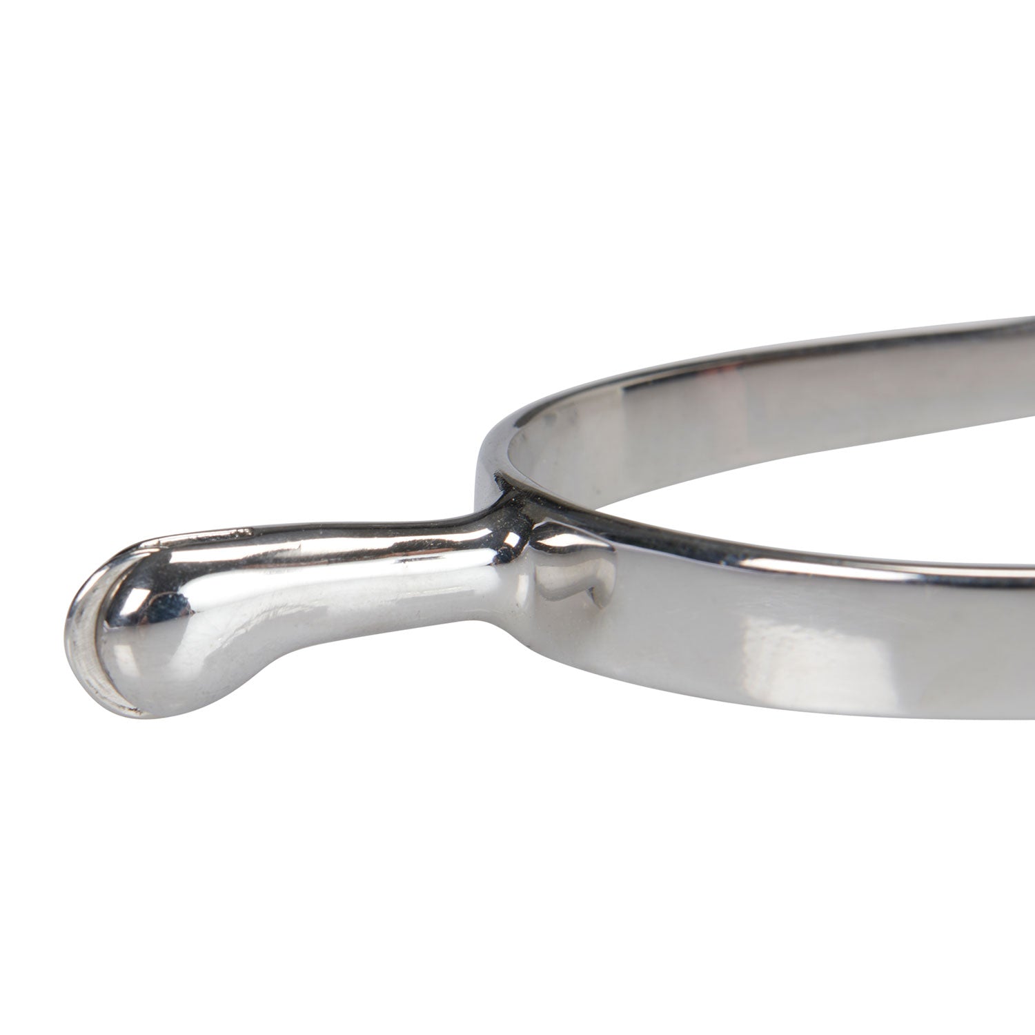 Stainless steel spurs with small rowel that facilitate the action of the leg