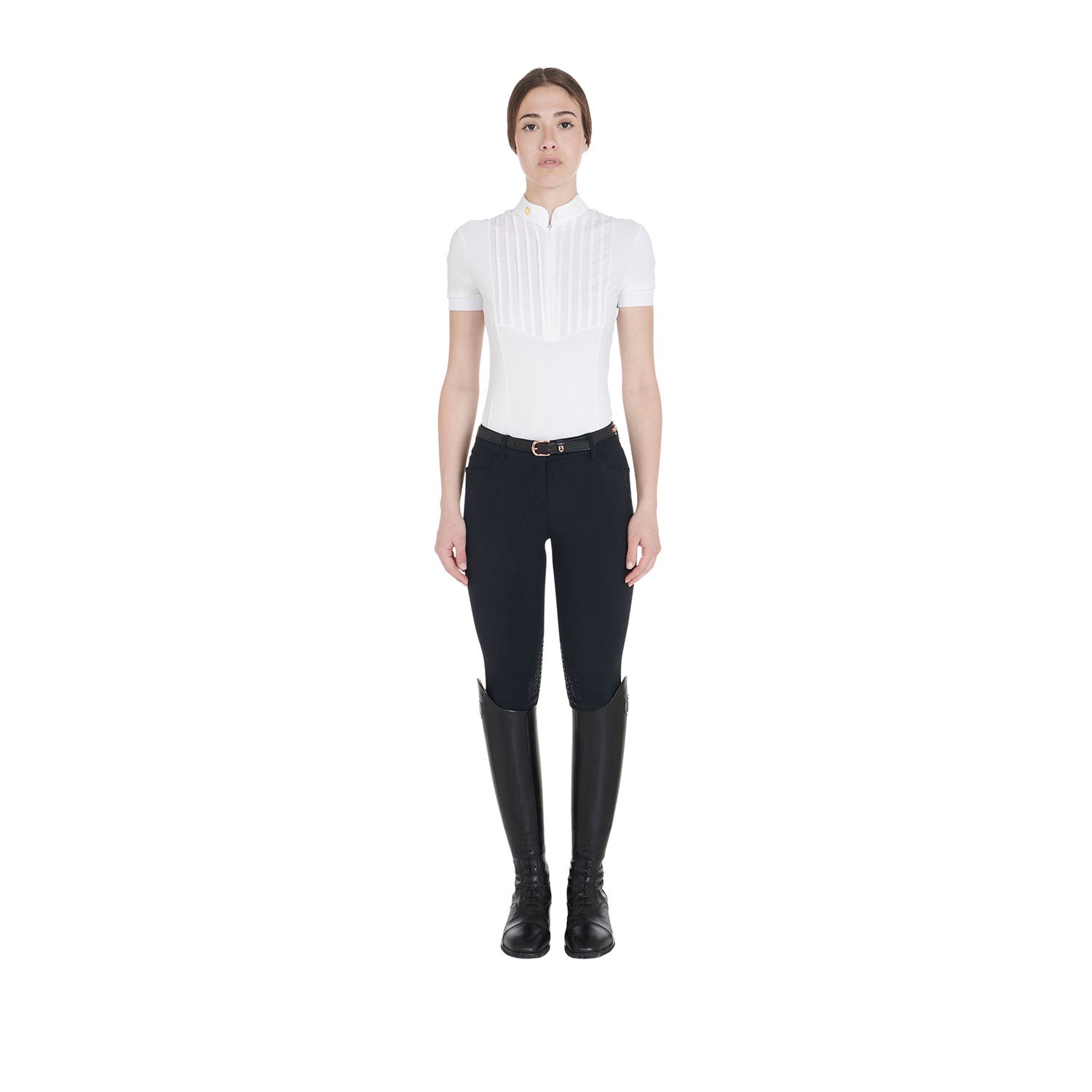 Elevate your equestrian style with the Equestro Leather Belt featuring a rose gold clincher. Crafted from soft, high-quality leather, this belt offers exceptional durability and comfort for everyday wear. Its elegant rose gold clasp adds a refined touch, making it both functional and fashionable. Easy to maintain—simply wipe with a soft, dry cloth to keep it looking pristine. Perfect for riders who value both performance and style.