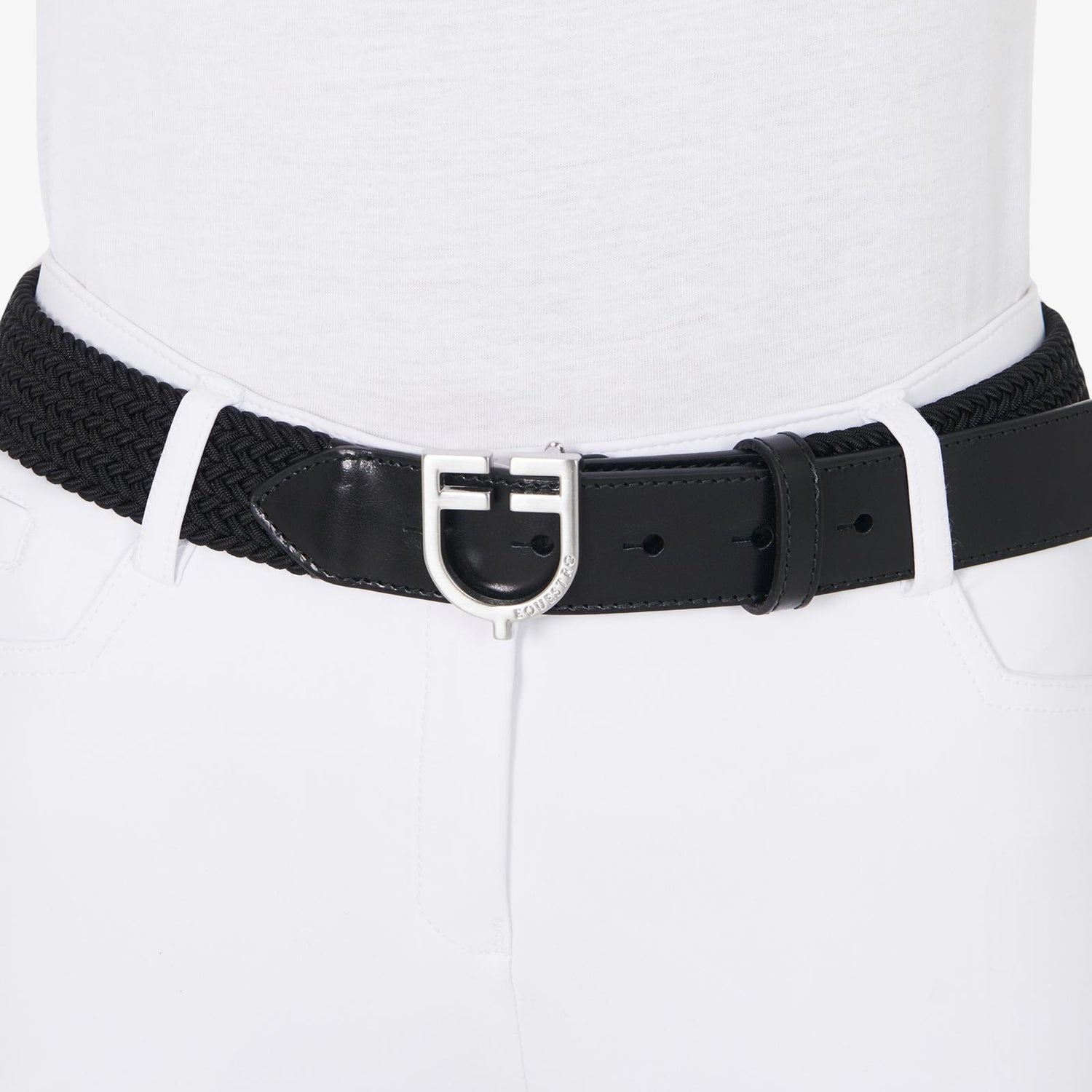 Experience unmatched comfort and style with the Equestro Leather Elastic Belt featuring a distinctive logoed buckle. Crafted from soft leather combined with elastic fabric, this belt offers flexibility and durability ideal for both competitions and everyday training. Its blend of leather, nylon, elastane, and steel ensures a secure fit without sacrificing comfort. Easy to maintain, simply clean with a soft, dry cloth—no washing or ironing needed. Elevate your equestrian wardrobe with a belt designed to perform as hard as you do.