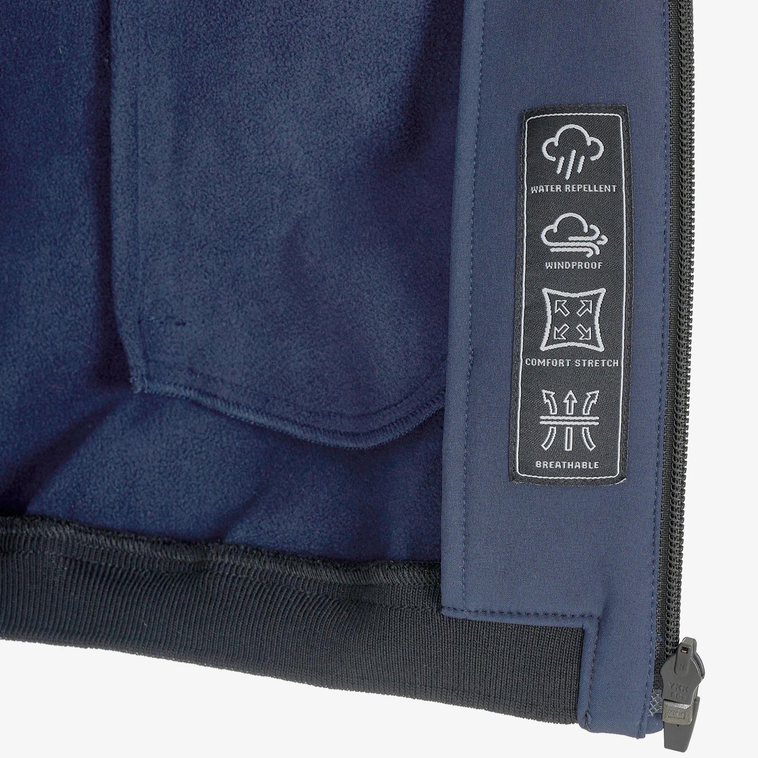- Ribbed elastic band cuffs and waistband.