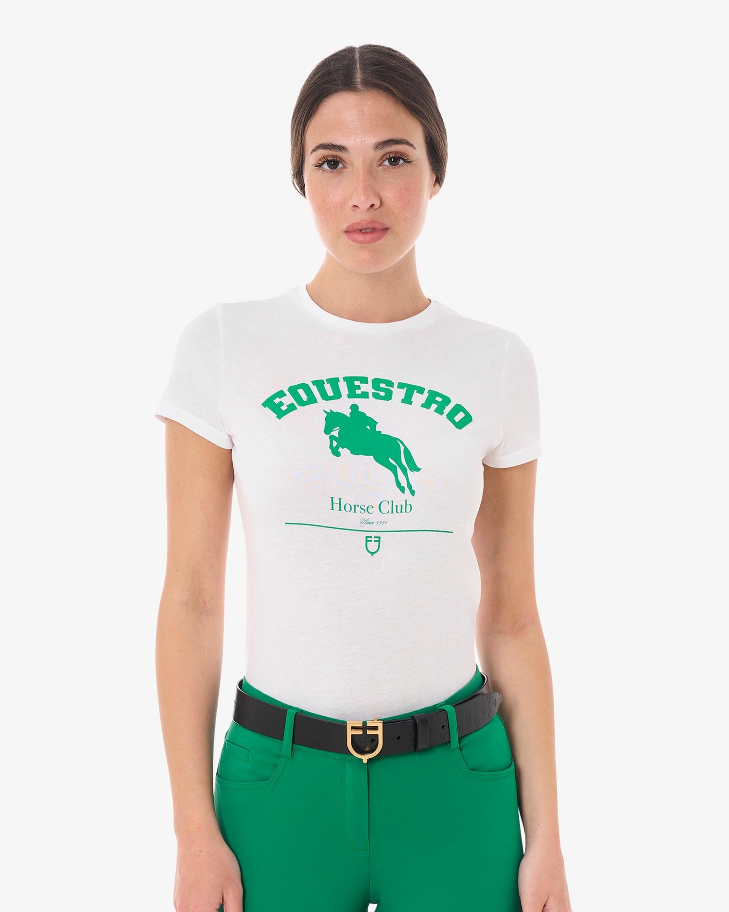 Equestro Women's Cotton Jumping Horse Club T-Shirt
