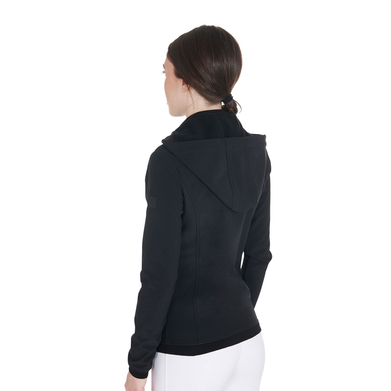 Equipped with removable hood, soft fleece internal padding, windproof zip closure and elastic waist and cuffs. Logo patch on the left sleeve.