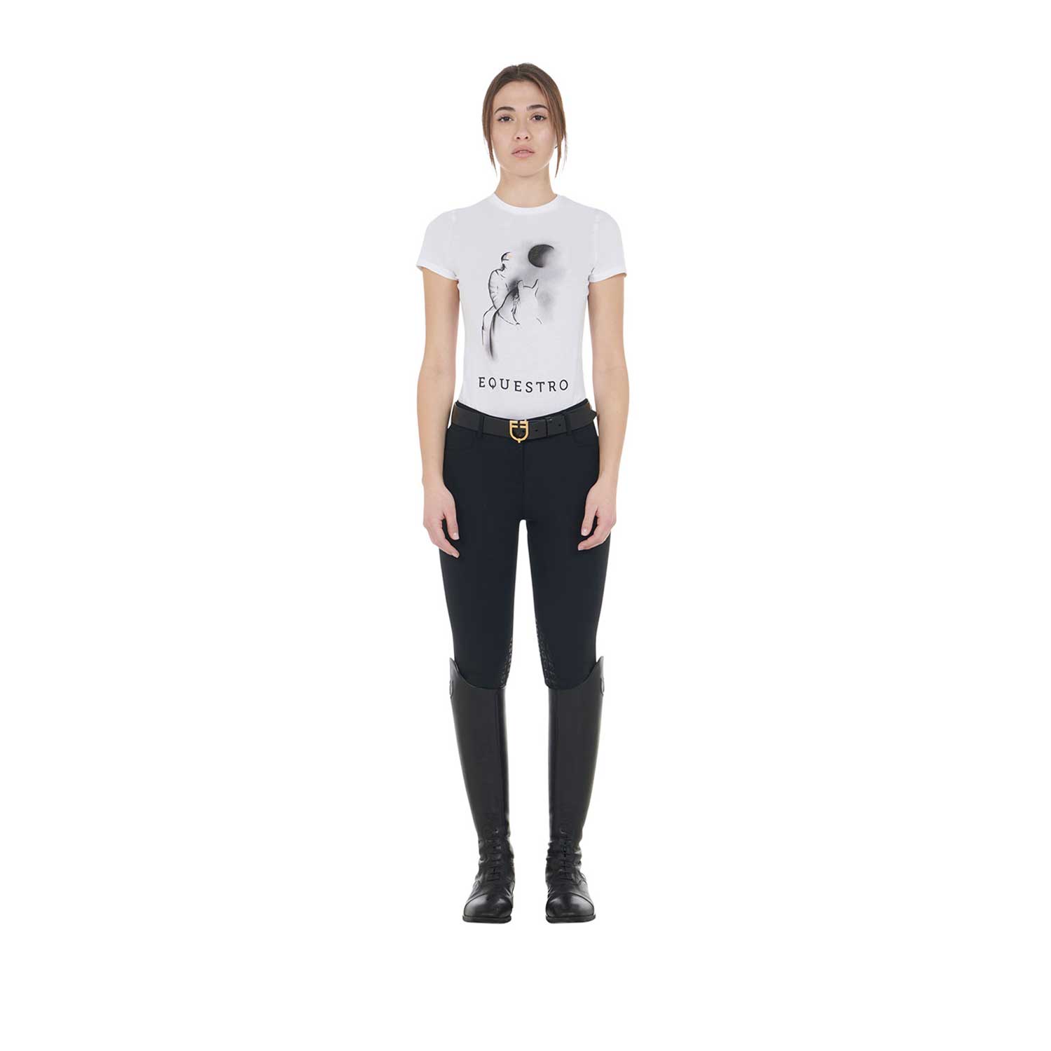 - Equestrian Logo graphic at the top of the back area
